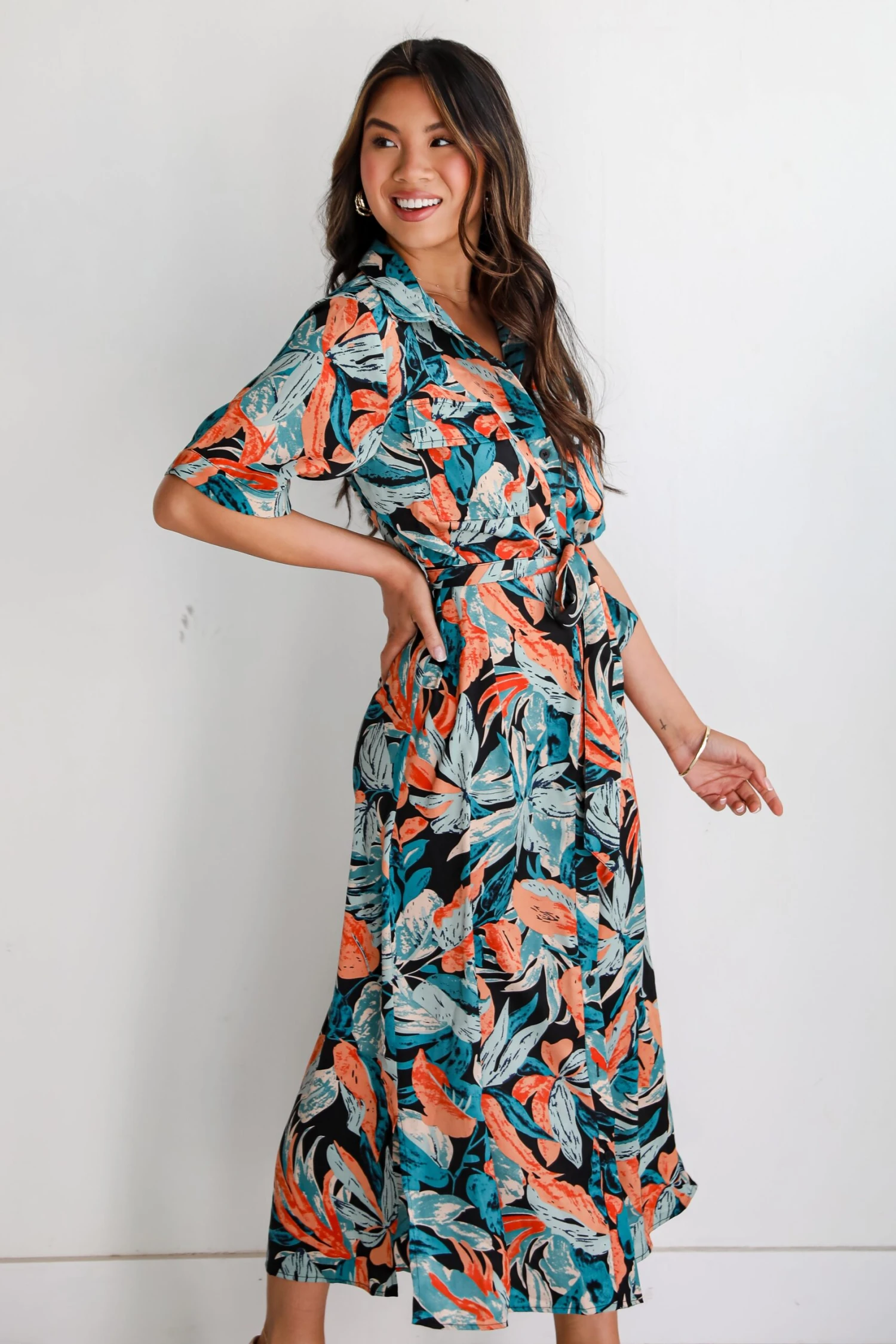 Sunshine, a cool drink, and the Bali Beauty Tropical Print Midi Dress make for a perfect vacay trio! Crafted from lightweight and breathable fabric, this dress offers both style and comfort for any warm-weather occasion. The vibrant tropical print features lush palm leaves, exotic flowers, and vivid colors, creating a mesmerizing visual feast that evokes the beauty of faraway destinations. Whether you’re sipping cocktails by the beach or exploring a bustling tropical city, this midi dress is sure to make a statement wherever you go. Dress it up with statement earrings and a straw clutch for a chic evening look, or keep it casual with a floppy hat and woven tote for a day of leisurely island hopping! Available in 2 colors.