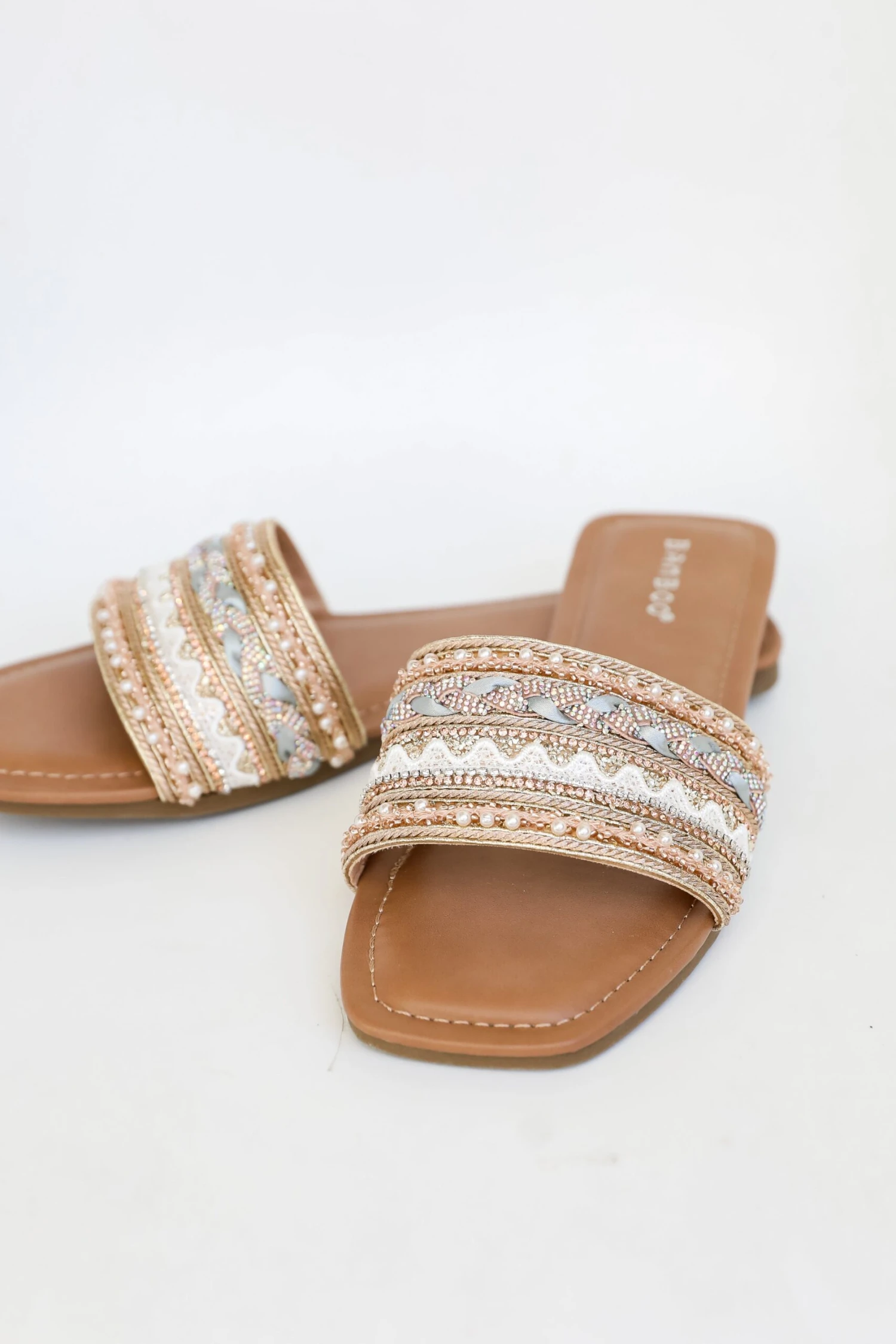 The Better Together Gold Beaded Rhinestone Slide Sandals are just what you need to make this summer unbelievably stylish! These cute slides are designed with a faux leather sole. They feature a beaded rhinestone toe-band atop a peep-toe upper. Style the Better Together Gold Beaded Rhinestone Slide Sandals with anything from maxi dresses to denim shorts + bodysuits!