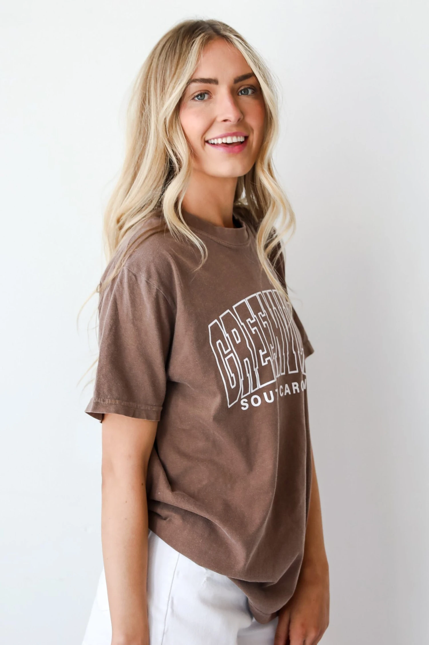 Calling all Greenville residents, the Brown Greenville South Carolina Tee was made just for you! This comfy tee is designed with a soft and stretchy knit. It features a crew neckline, short sleeves, a relaxed fit, and the words “Greenville South Carolina” on the front. Style the Brown Greenville South Carolina Tee with your favorite denim and sneakers for a casual daytime look!