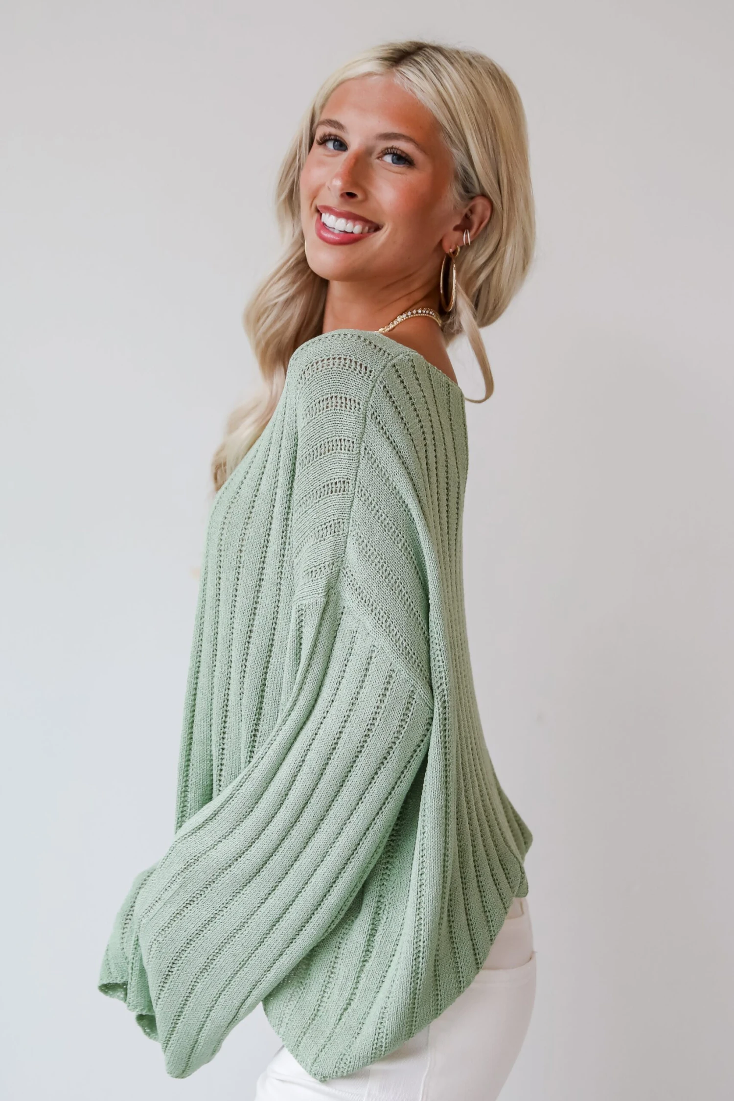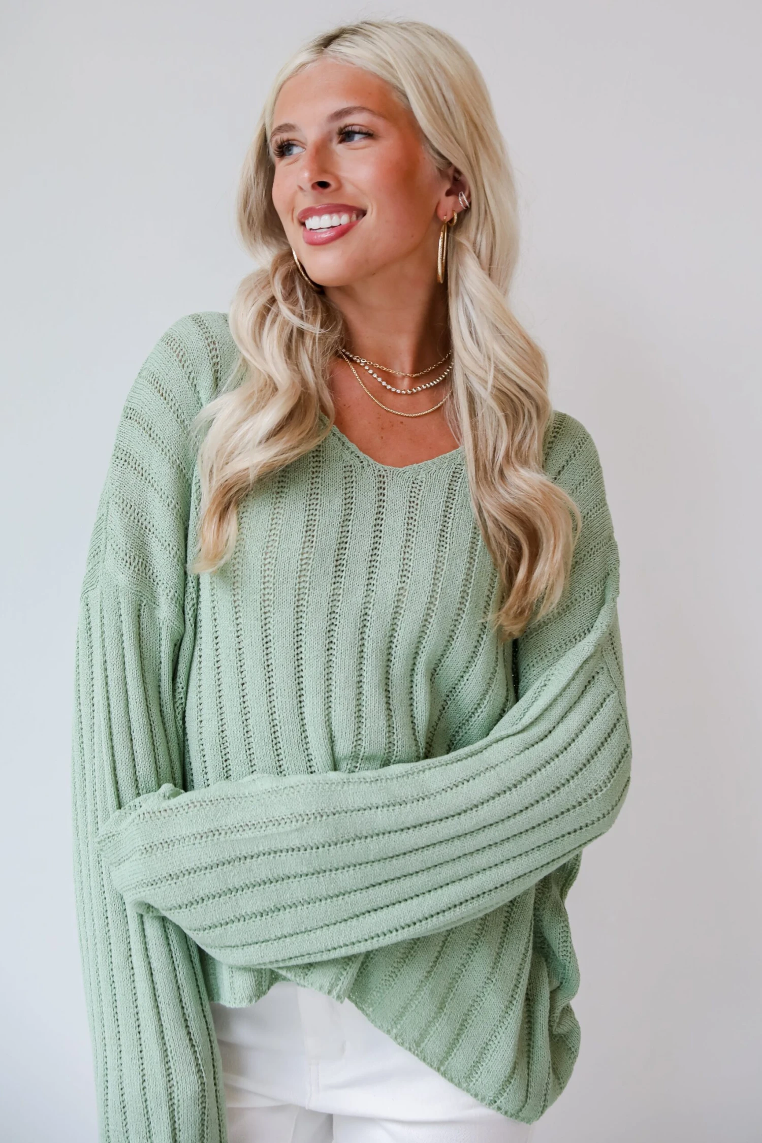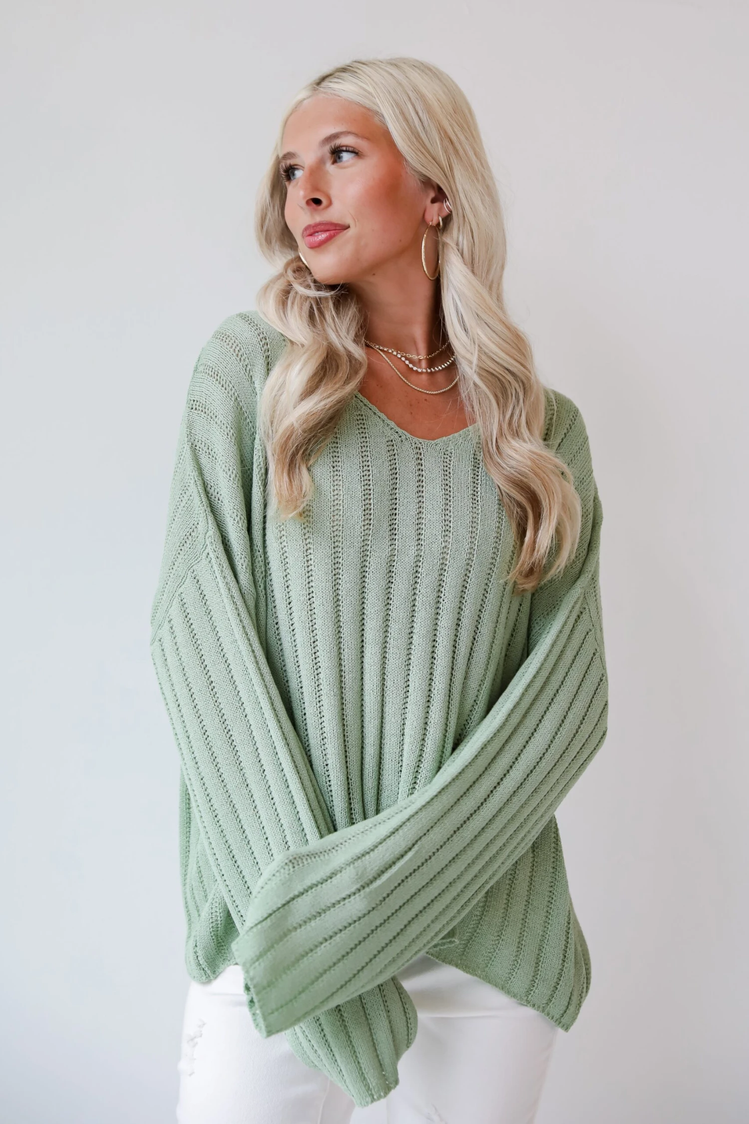 Whether you pair the Casual Essence Sage Lightweight Knit Top with cutoff shorts or your favorite overalls, your summer style is sure to impress! Crafted with attention to detail and designed for versatility, this sweater is a must-have addition to your closet. Made from a soft and breathable lightweight knit fabric in a serene sage green hue, this sweater offers a luxurious feel against the skin. Its relaxed fit provides effortless comfort, while the delicate knit adds a touch of texture and dimension. The sage green color exudes tranquility and freshness, making it an ideal choice for spring and summer layering. Whether you’re lounging at home or exploring the outdoors, this sweater offers the perfect balance of warmth and breathability!