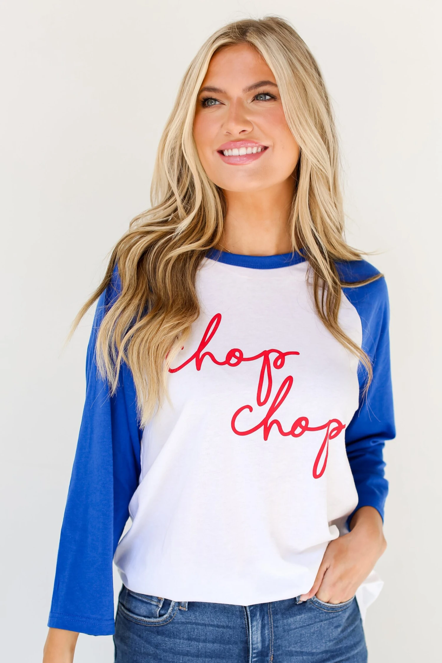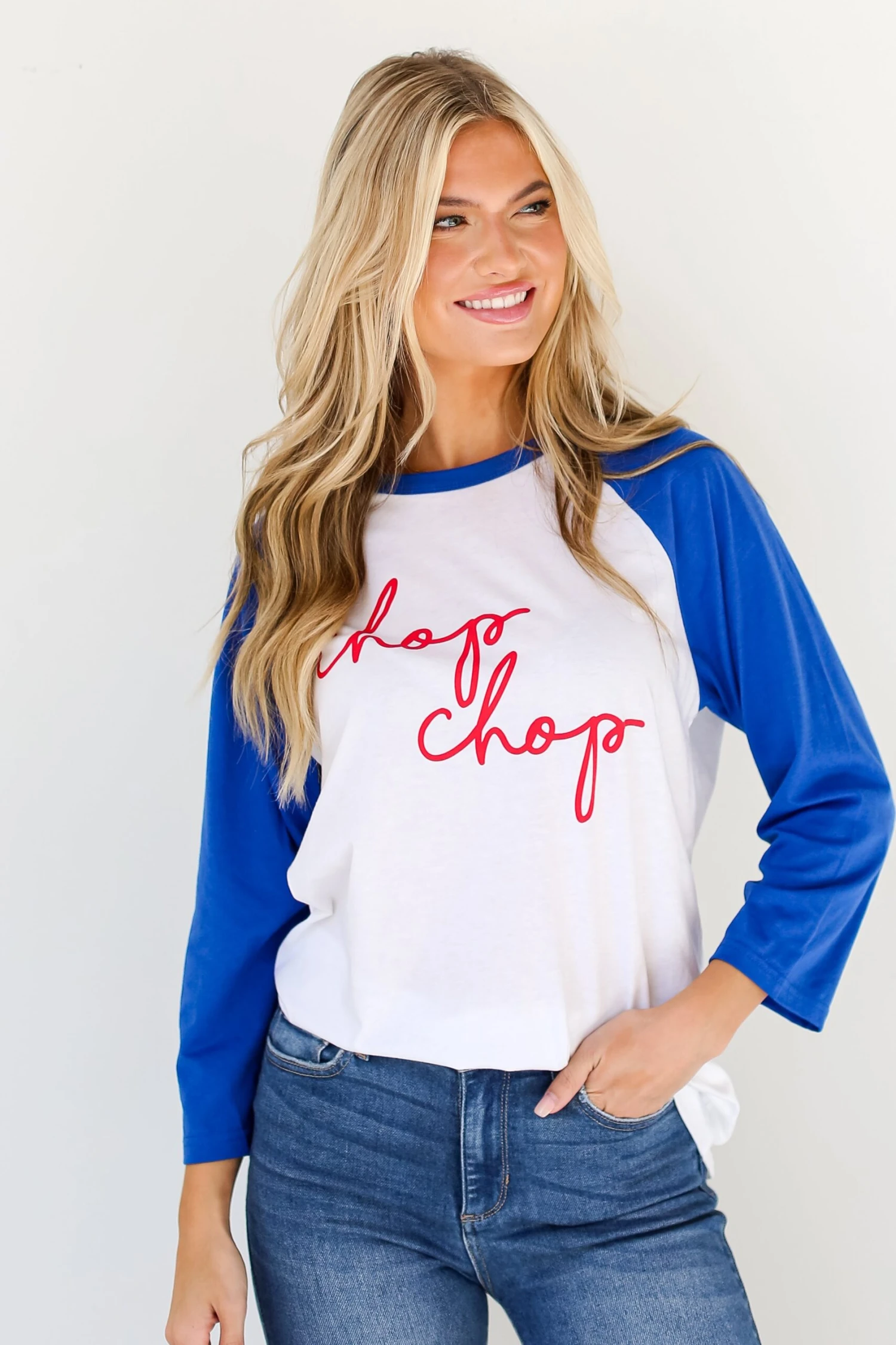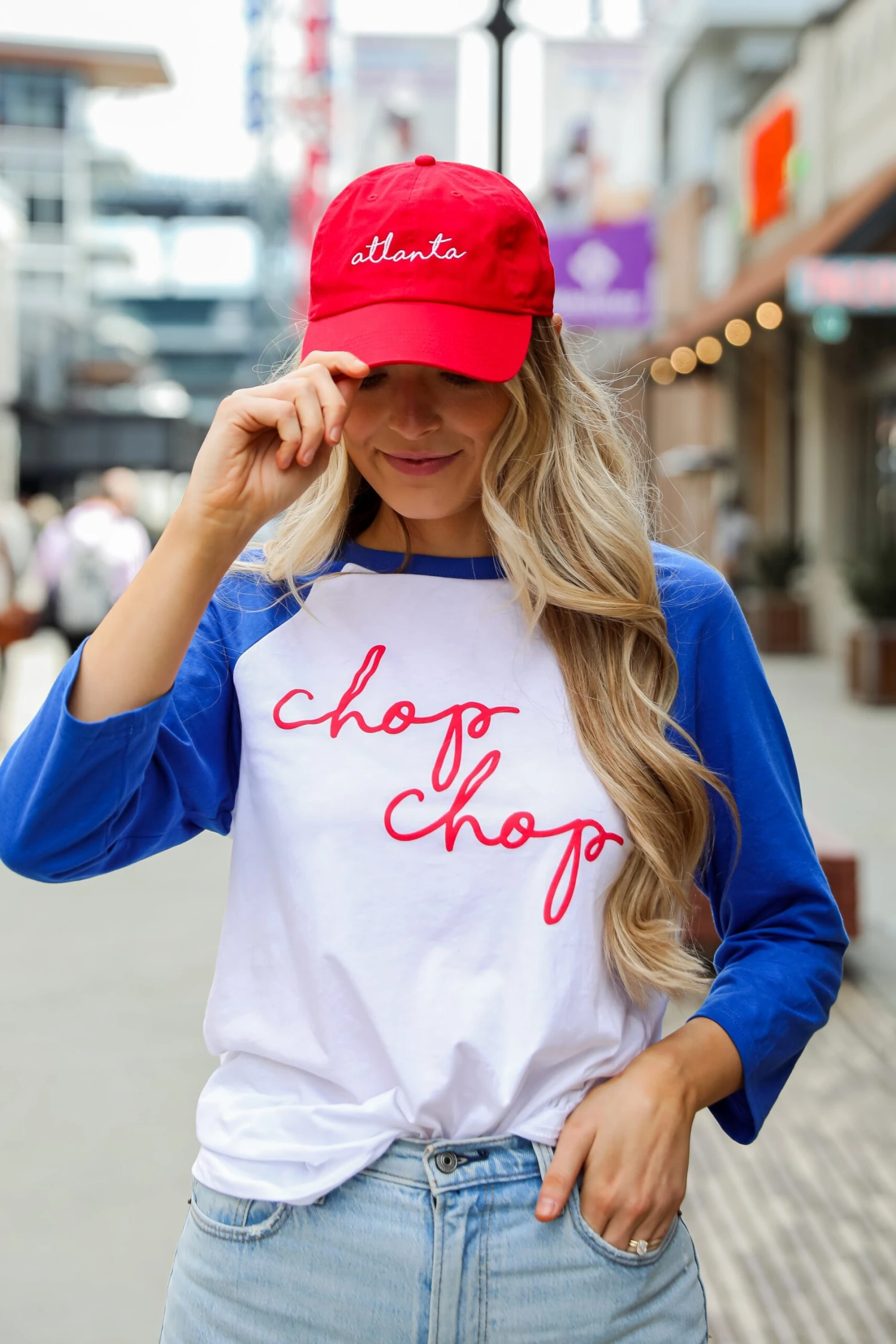 Calling all Braves fans, the Chop Chop Raglan Tee was made just for you! This cute tee is designed with a soft and stretchy knit. It features a crew neckline, 3/4 length raglan sleeves, a relaxed fit, and the words “Chop Chop” on the front. Style the Chop Chop Raglan Tee with your favorite denim and sneakers for game day!