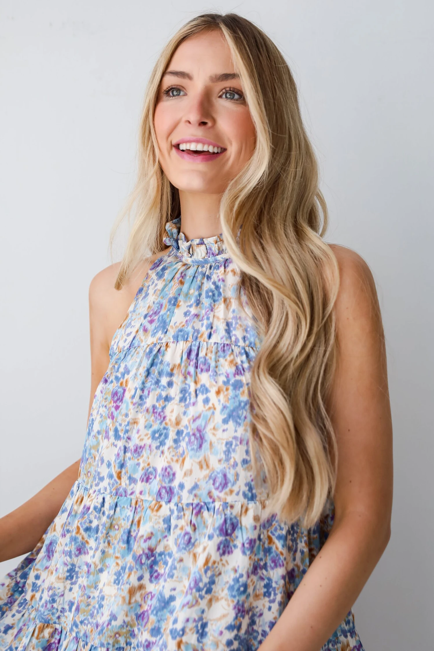 Looking absolutely darling is what the Daytime Sweetie Blue Floral Tiered Mini Dress is all about! Radiating with feminine grace, this dress is a captivating blend of sophistication and playful allure, making it the perfect addition to your wardrobe. Crafted from a soft and lightweight fabric, the dress features a mesmerizing blue hue that evokes the tranquility of a summer sky. Adorned with a delicate floral print in shades of white, lavender, and periwinkle, each bloom adds a touch of whimsy and romance to the ensemble. The sleeveless design offers a refreshing take on classic femininity, allowing you to showcase your shoulders and soak up the sun’s warmth. The tiered skirt adds dimension and movement to the silhouette, cascading in gentle folds that create a sense of ethereal beauty with every step!