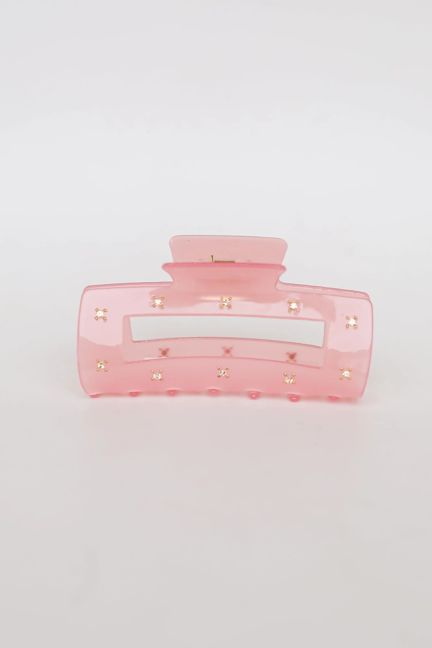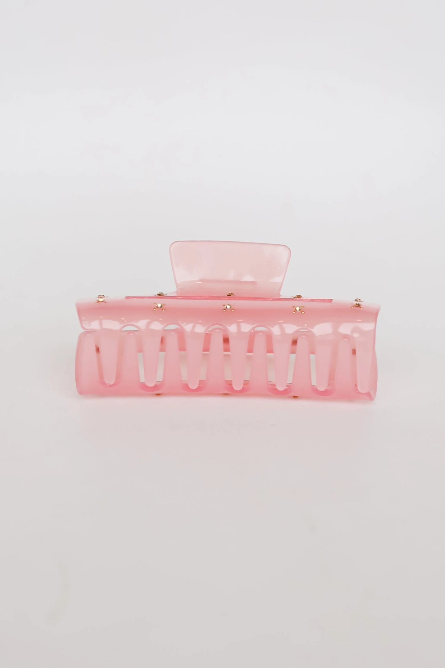 If you want to add something a lil’ extra special to your look, the Dazzling Bliss Pink Rhinestone Claw Hair Clip is perfect for the occasion! This cute hair clip has an acrylic rectangle design with rhinestones + a hinged, claw-style closure. Throw your hair up with the Dazzling Bliss Claw Hair Clip to instantly add a girly touch to your outfit!