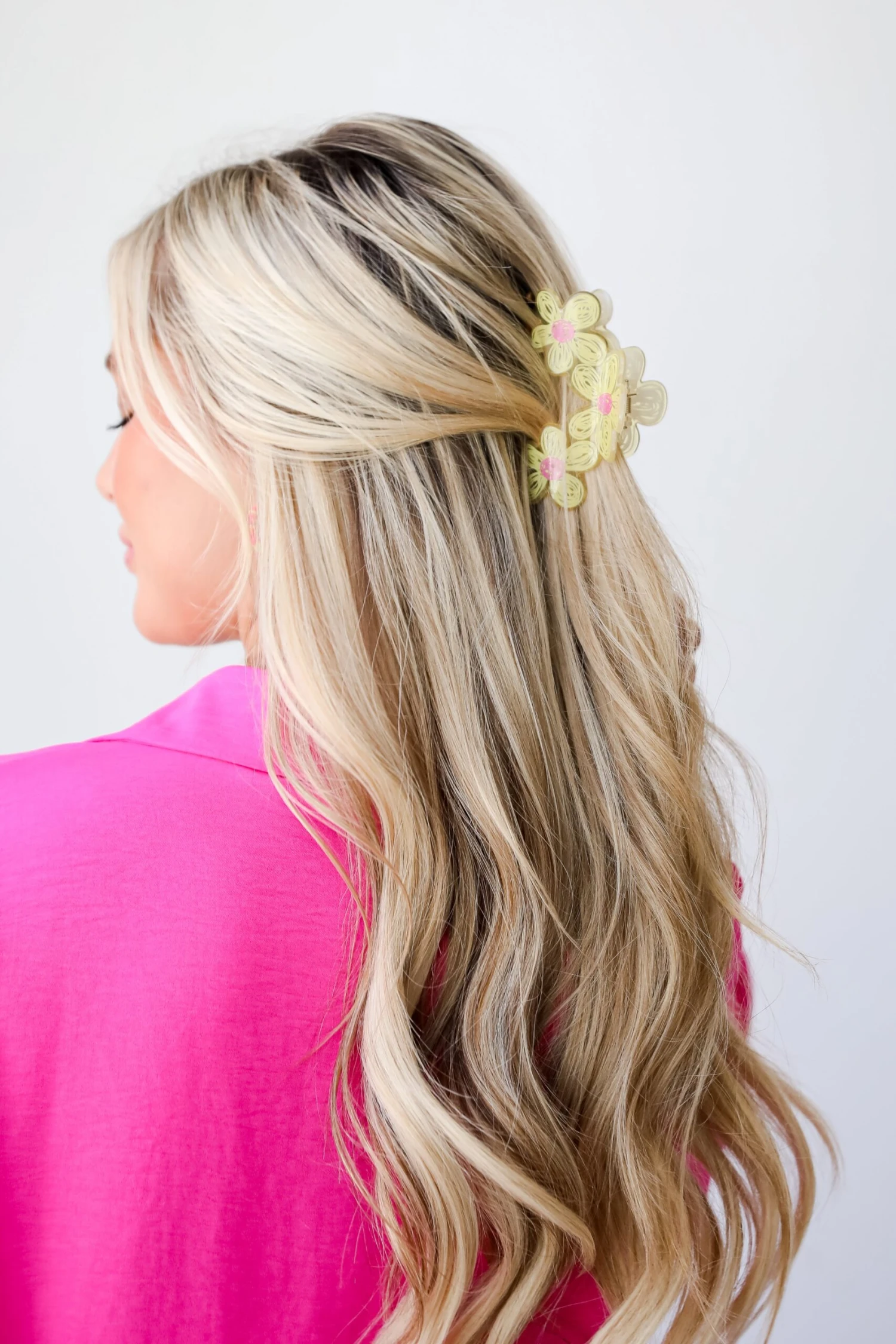 Instantly enhance the cute vibes of any look with the addition of the Delicate Nature Floral Claw Hair Clip! This cute hair clip has an acrylic design with flowers + a hinged, claw-style closure. Throw your hair up with the Delicate Nature Floral Claw Hair Clip to instantly add a girly touch to your outfit! Available in 2 colors.