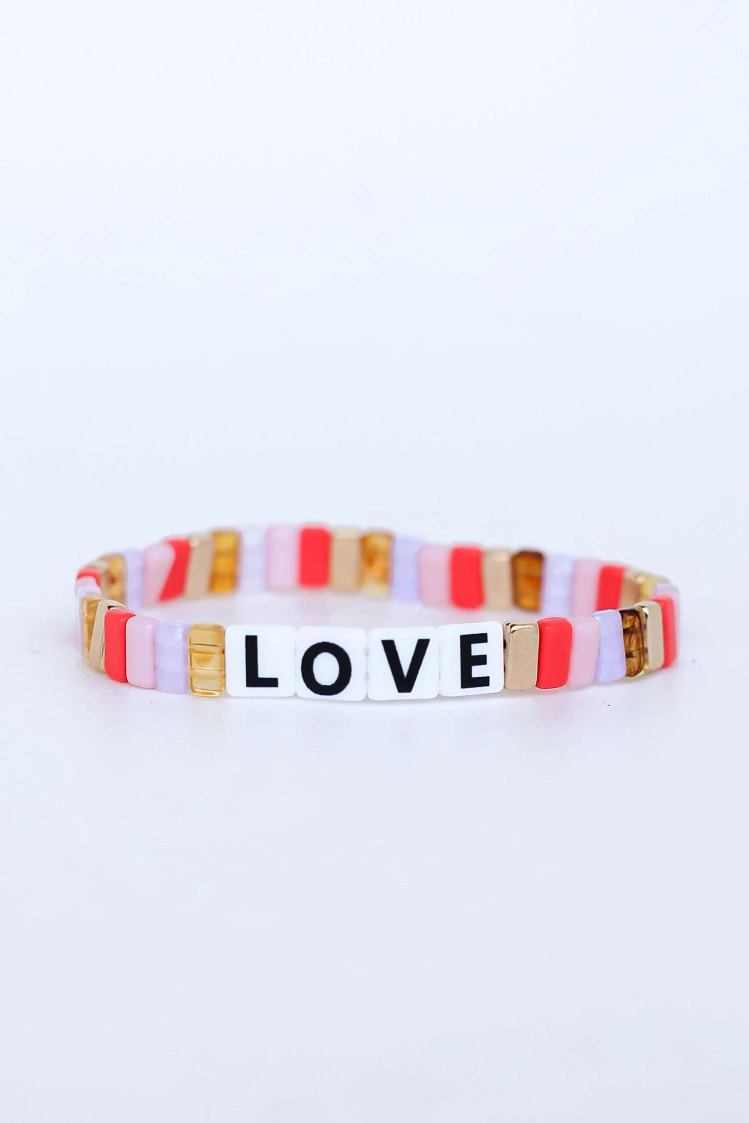 You’ll be stepping out in style thanks to the Delilah Beaded Love Bracelet! This cute bracelet is made of colored beads with the word “Love”. Wear it on it’s own, or stack it with other bracelets!