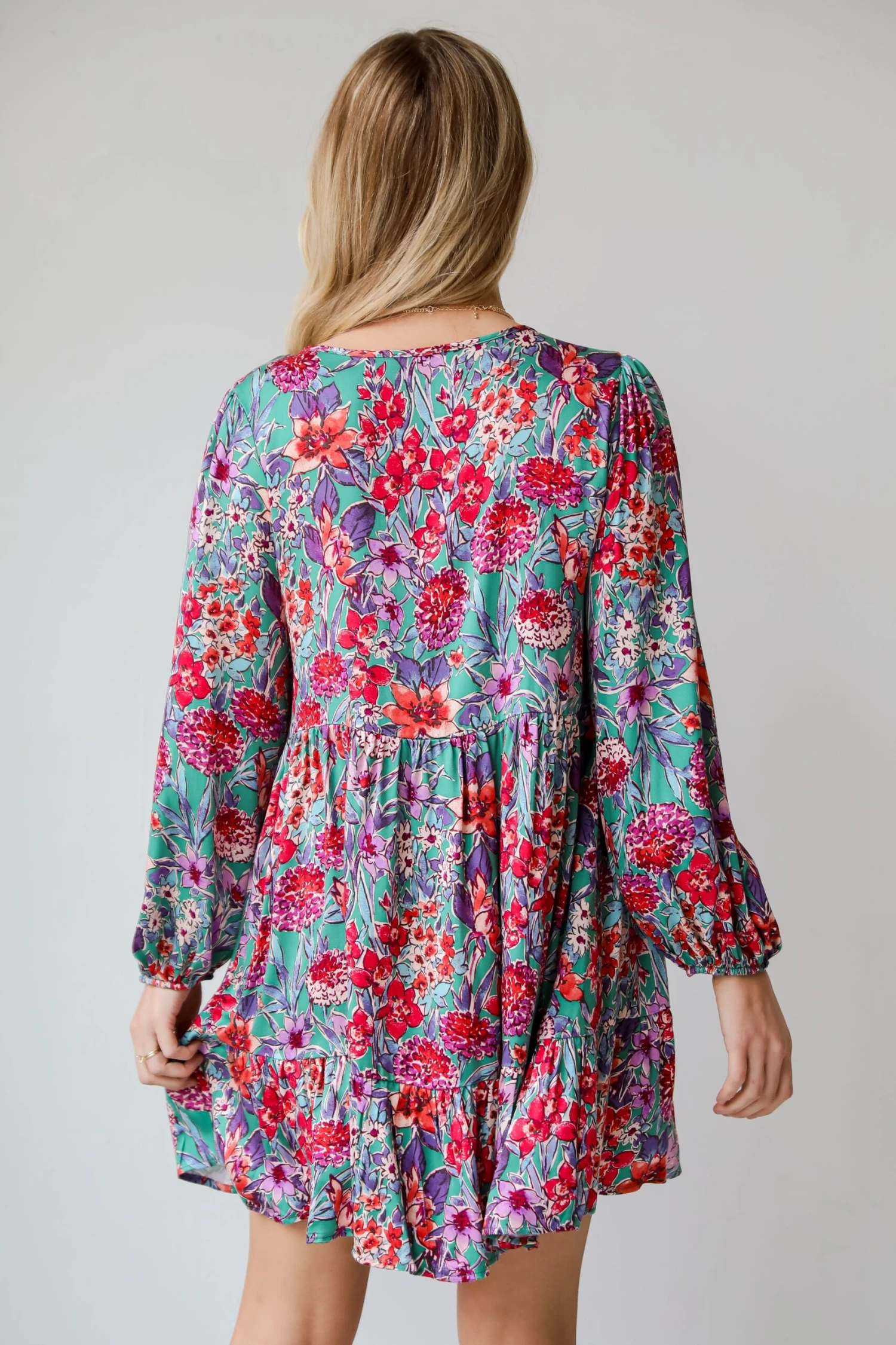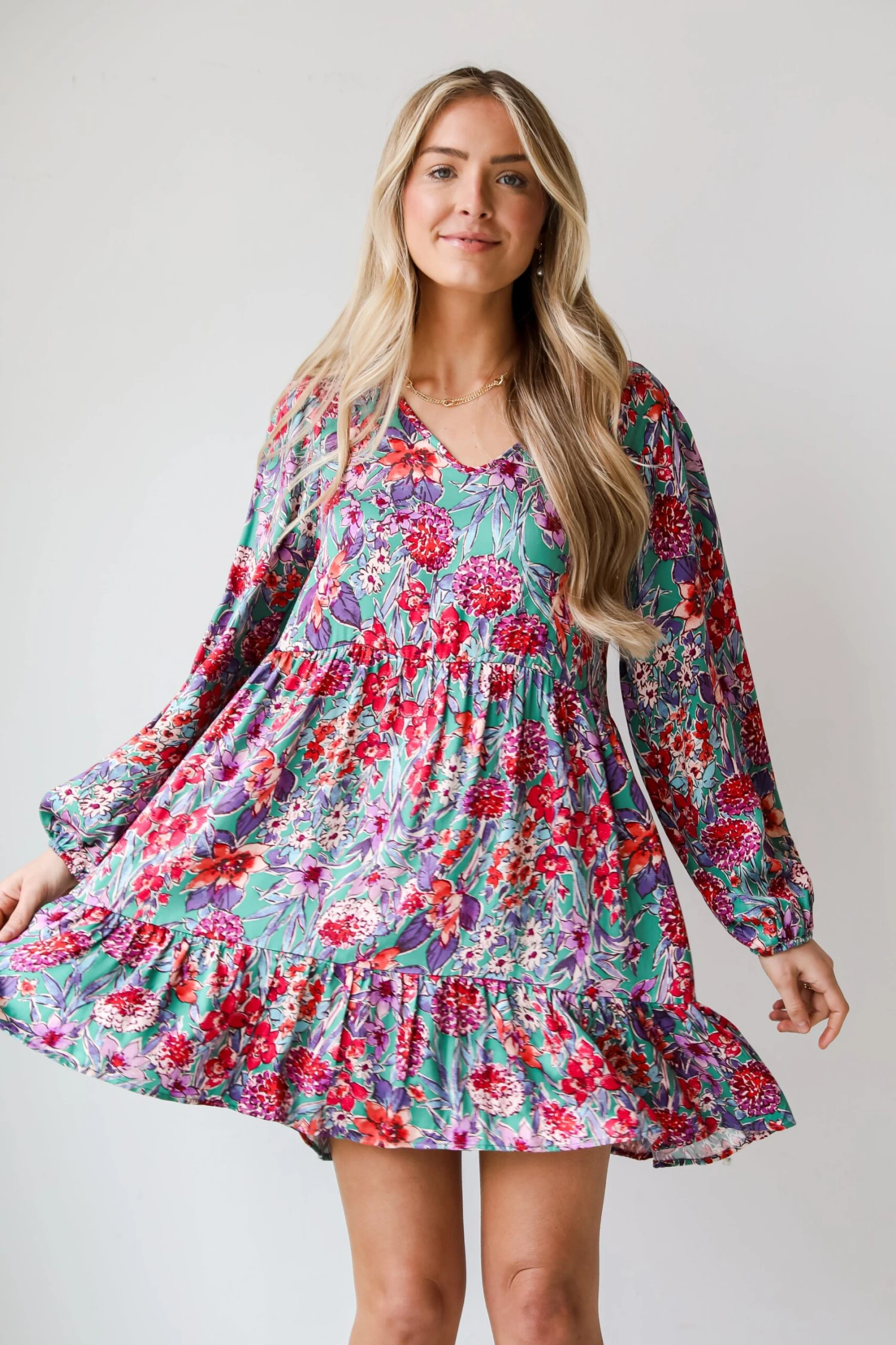 You’ll be a delight at all the garden parties you attend in the Adored Entrance Green Floral Babydoll Mini Dress! This enchanting dress is a celebration of lush greenery and delicate florals, creating a vibrant and playful silhouette that captures the essence of carefree femininity. The tiered design of the dress adds a touch of breezy movement and modern flair, creating a dynamic structure that mirrors the organic flow of a flourishing garden. Each tier is adorned with a delightful floral pattern, showcasing a burst of colors that dance harmoniously against the rich green backdrop. Pair it with sandals for a carefree daytime look or elevate the ensemble with heels and playful accessories for a chic and vibrant evening affair!