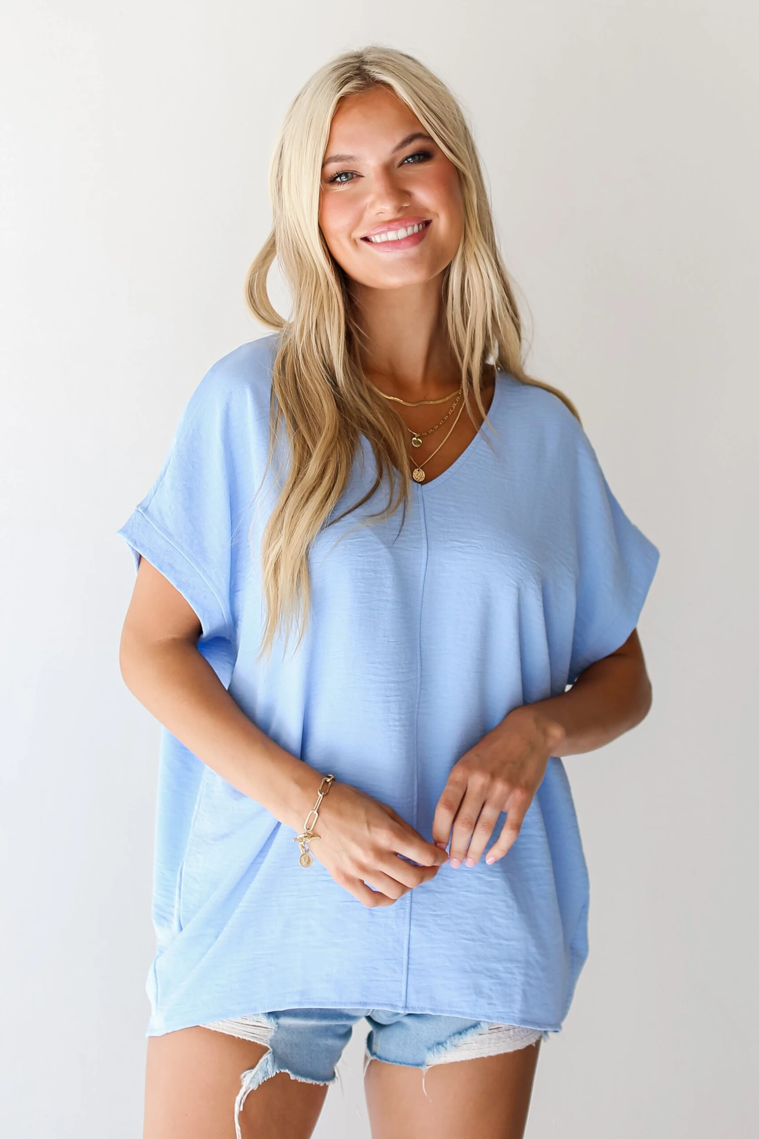 Turning heads is easy when you have a look that’ll charm everyone like the Appealing Passion Oversized Blouse! This delightful garment showcases a serene light blue hue that exudes a sense of tranquility and understated beauty. The light blue color of this blouse adds a touch of freshness and versatility to your ensemble. The fabric is carefully selected for its softness, breathability, and draping ability. Pair it with tailored trousers or a skirt for a polished and sophisticated office look. For a more casual ensemble, style it with jeans or shorts for a relaxed and chic daytime outfit. Add statement accessories and heels to elevate it for an evening event or layer it under a blazer for a refined and professional appearance! Available in 2 colors.