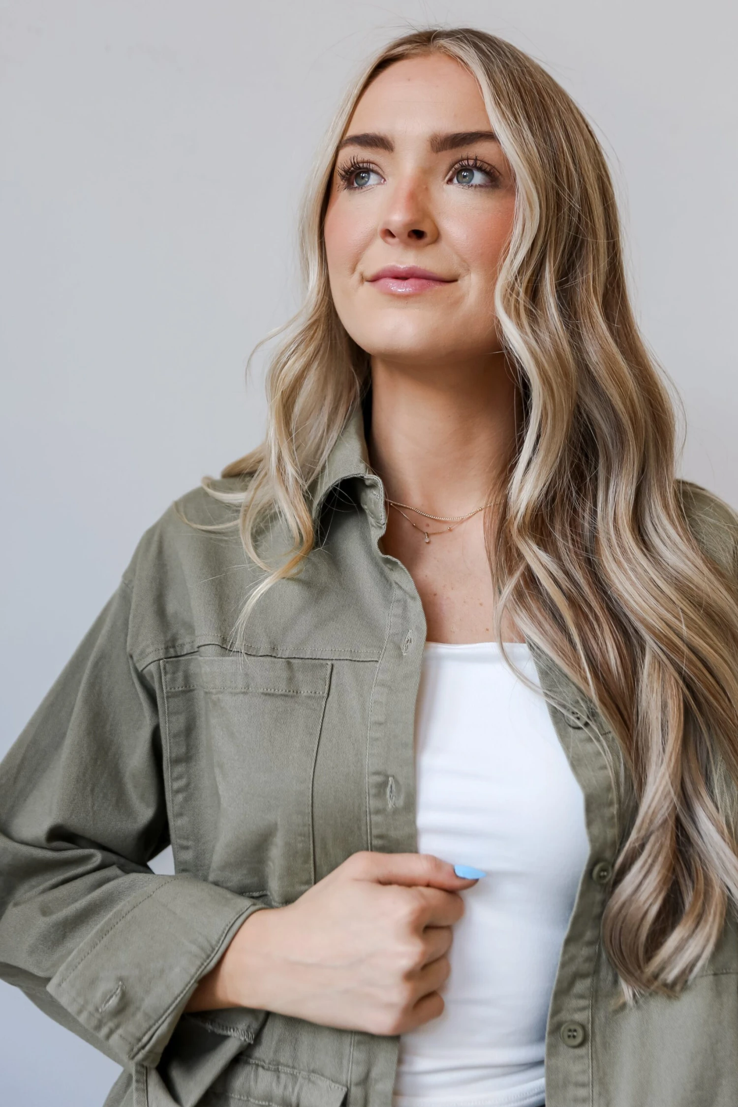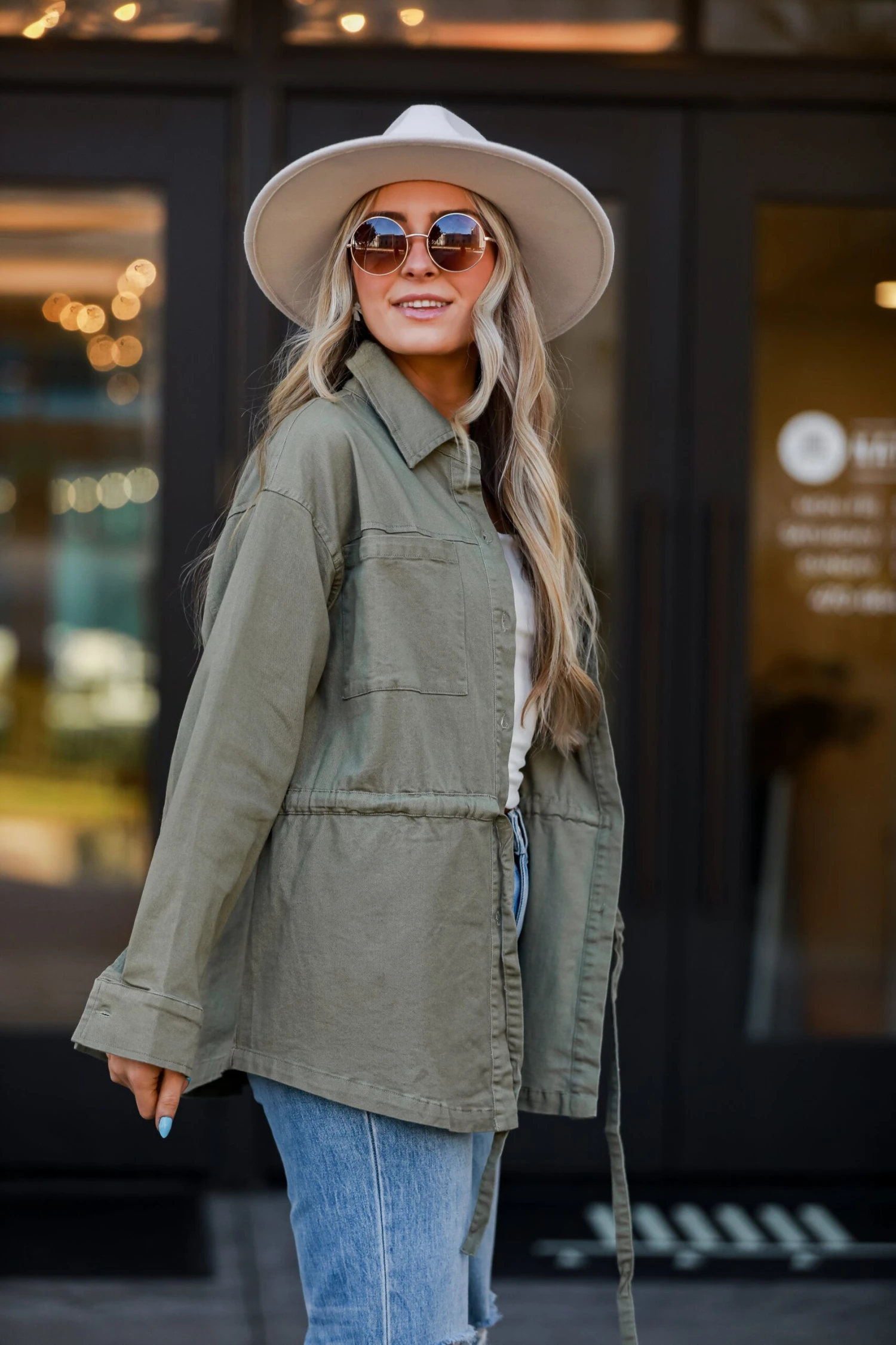Get ready to turn some heads, ’cause it’s impossible not to be impressed by the Edgy Arrival Olive Denim Jacket! Embrace the versatility of this jacket as it becomes your go-to layering piece for both casual and chic ensembles. Crafted from durable denim fabric in a rich olive hue, this jacket exudes a touch of military-inspired sophistication. The olive tone adds a contemporary twist to the timeless denim silhouette, making it a standout piece in your collection. The jacket features a tailored fit that accentuates your silhouette while allowing for ease of movement. Versatility is at the forefront, whether you’re dressing it down with a casual tee and jeans or elevating your look by layering it over a dress or tailored trousers!