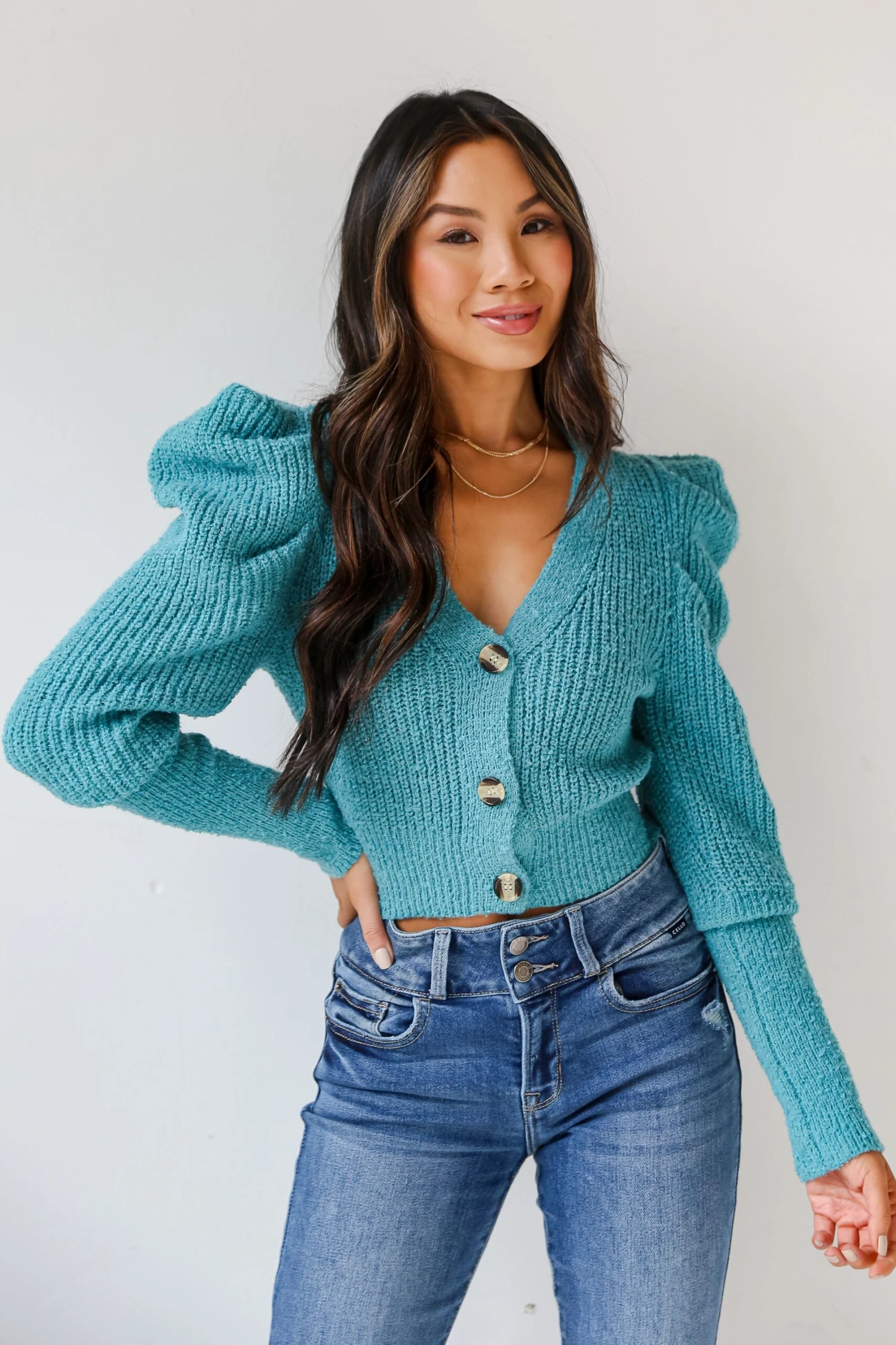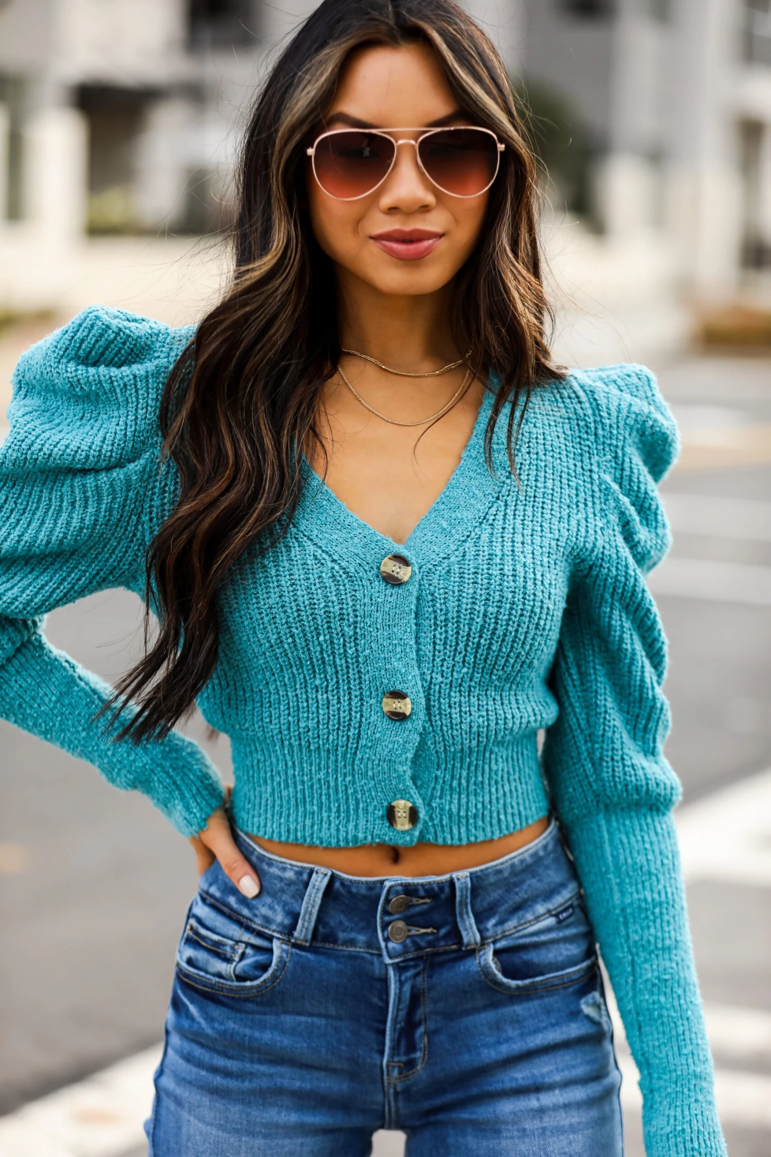 The best view around is the one that involves you, the From The Heart Teal Sweater Cardigan, and a brisk winter morning! This mid-crop cardigan seamlessly merges comfort with on-trend design, featuring a captivating teal hue and elegant puff shoulders for a fashion-forward twist. Crafted from a luxuriously soft knit, this sweater cardigan envelops you in warmth while showcasing a contemporary silhouette. The mesmerizing teal color, reminiscent of deep ocean hues, adds a touch of richness to your wardrobe. The mid-crop length strikes the perfect balance between casual and chic, allowing for versatile styling options. The standout feature of this cardigan is its puff shoulders, lending an air of vintage-inspired glamour to the modern design. Whether you’re heading to a brunch date or adding a layer of warmth to your office attire, this cardigan is a versatile and stylish choice!
