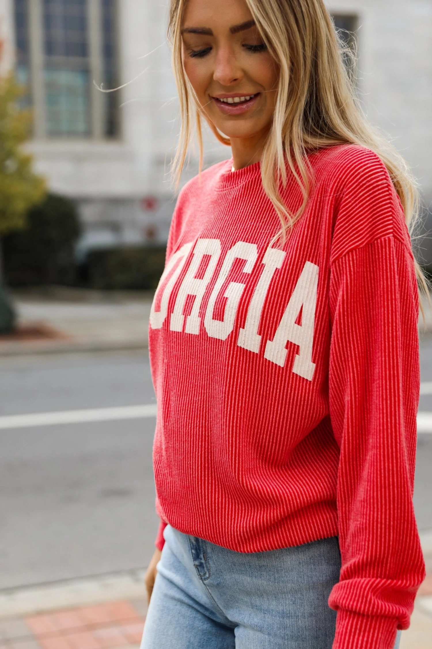 Introducing the Georgia Corded Pullover, a cozy and stylish piece that allows you to show off your team pride while staying warm and comfortable. This pullover is designed with Georgia fans in mind, combining comfort and spirit in one fashionable garment. Crafted from high-quality fabric, this corded pullover offers a soft and comfortable feel, making it perfect for layering during cool weather or chilly game days. The corded texture adds a touch of trendy interest to the design, elevating it from a basic pullover to a fashionable statement piece. Pair it with your favorite jeans or leggings and stylish sneakers for a casual and comfortable look perfect for tailgating or cheering on your team from the stands! Available in 3 colors.