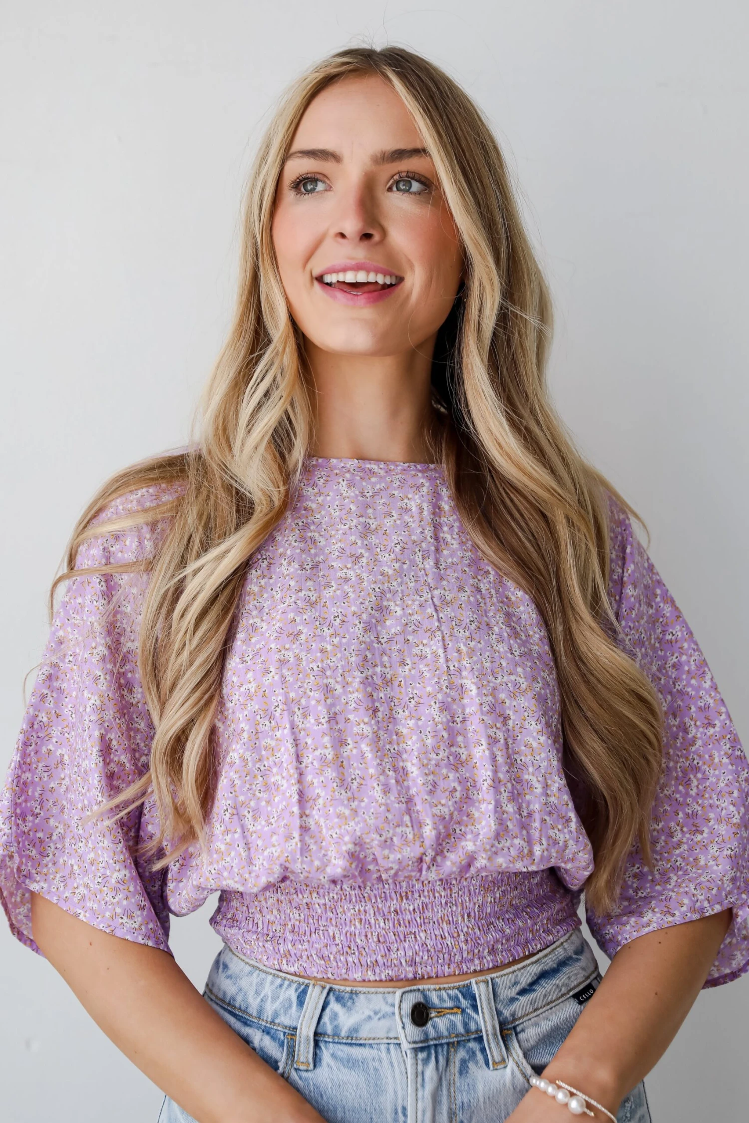 You’ll be the chicest cutie on the dance floor with a luxe look like the Ideal Perfection Lavender Floral Blouse! Crafted with intricate detail and delicate design, this blouse seamlessly blends feminine grace with romantic allure, making it a versatile addition to any wardrobe. The soft lavender hue of the blouse sets a serene and romantic tone, evoking the essence of a blossoming garden in the springtime. Adorned with a delicate floral pattern in shades of lavender, lilac, and blush, each bloom adds a touch of whimsy and elegance to the ensemble. Whether paired with jeans for a casual daytime look or tucked into a skirt for a more polished ensemble, this floral blouse is sure to make a statement!