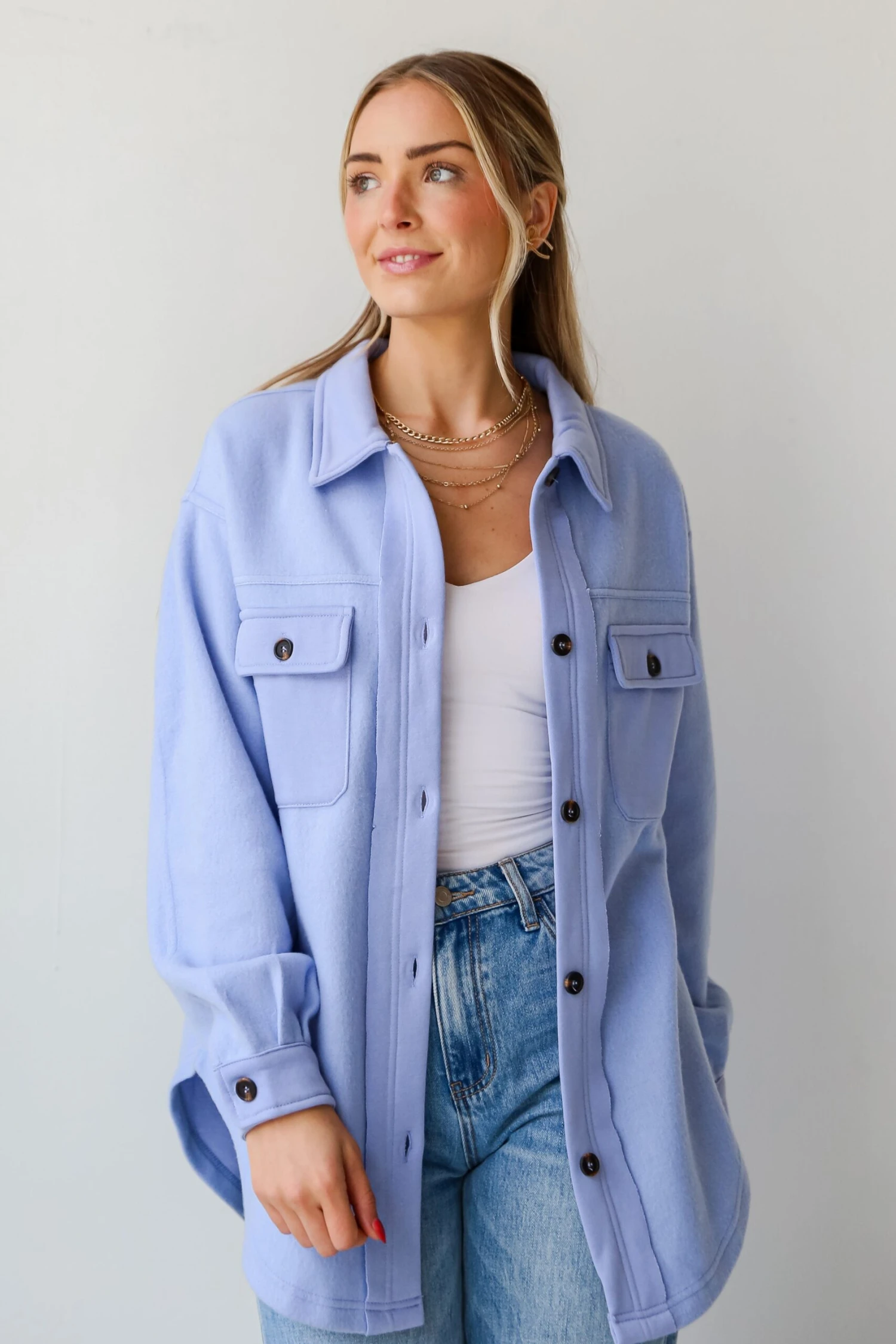 Showing off the Irresistible Comfort Blue Brushed Knit Shacket will be your favorite reason to head out into the cold this season! This shacket, blending the best features of a shirt and a jacket, is the perfect addition to your wardrobe for those days when you crave a cozy yet chic layer. Crafted from a luxuriously soft brushed knit fabric, this shacket envelops you in warmth while maintaining a lightweight feel. The serene blue hue adds a touch of sophistication to the casual design, making it a versatile piece for various occasions. Whether worn over a simple tee for a laid-back weekend look or paired with a dress for a trendy juxtaposition, this shacket effortlessly combines comfort and style!