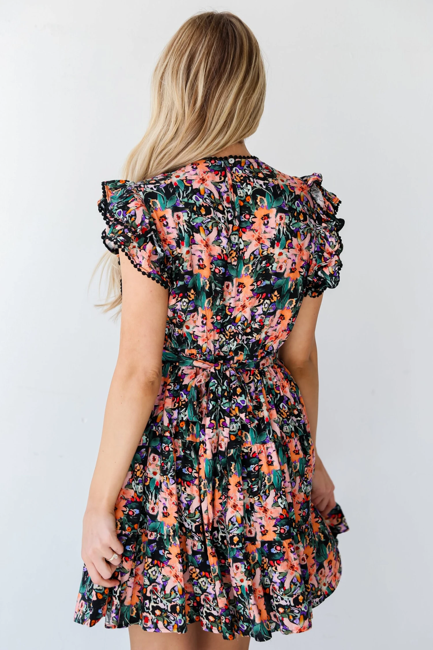 Soiree style has never been as sweet as the Moment Of Beauty Black Tiered Floral Mini Dress! This dress is a versatile wardrobe essential, designed to make you stand out with its dynamic silhouette and eye-catching floral details. The dark black hue serves as a versatile backdrop for the vibrant floral pattern, creating a visually stunning contrast that captures attention. The tiered construction adds a touch of whimsy, creating a dynamic and flowy silhouette that radiates youthful charm. Whether you’re attending a daytime event or stepping out for a night on the town, this dress effortlessly adapts to various occasions!