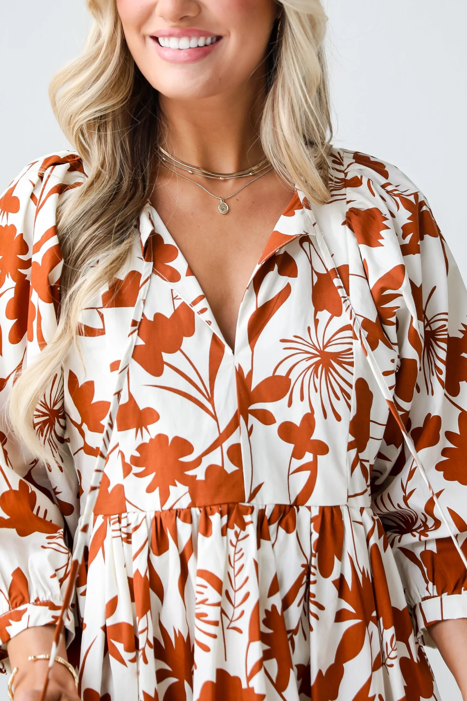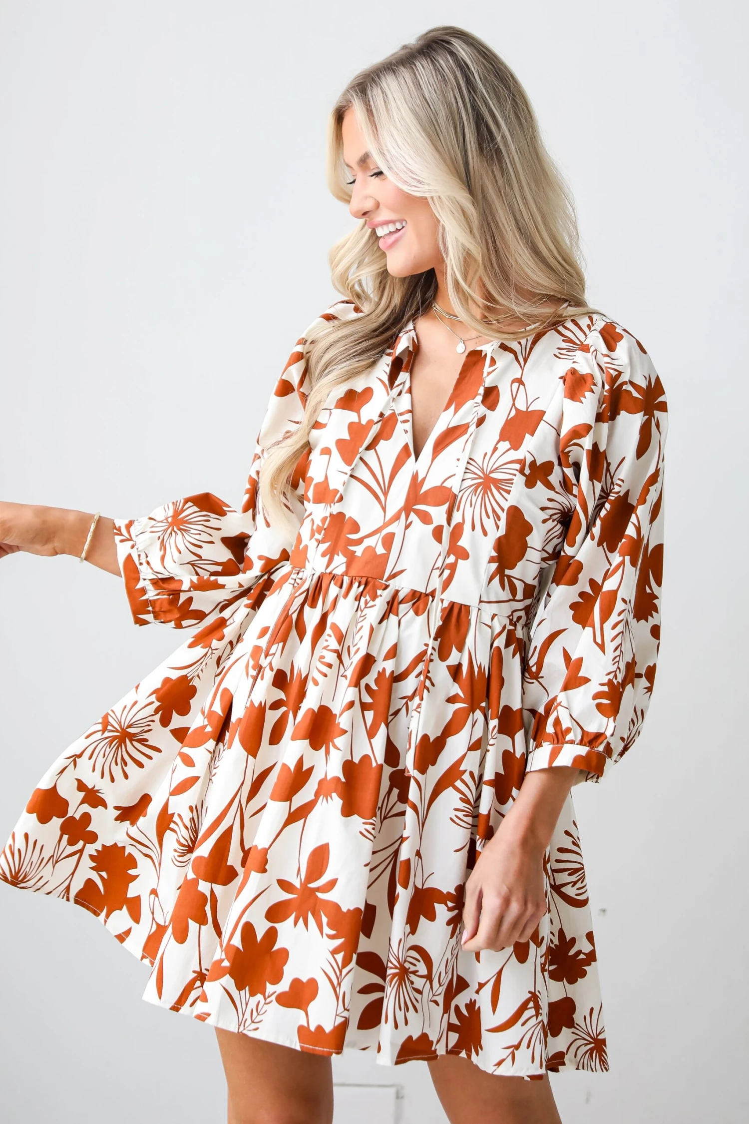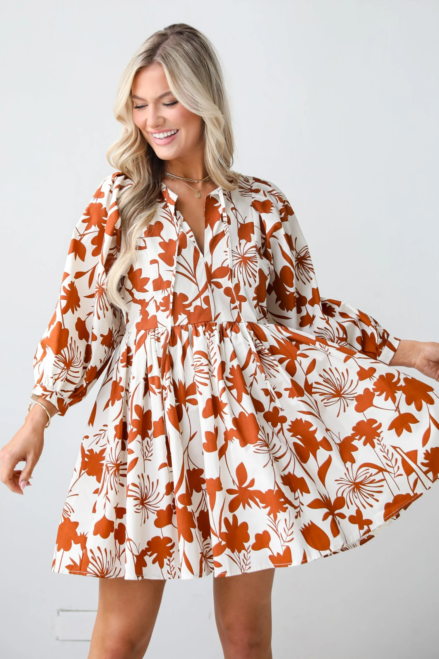 Complement your darling charm all day long in the Pretty Whimsy Floral Babydoll Mini Dress! This dress is designed to capture the essence of romance with its blooming floral pattern and a flattering babydoll silhouette. Crafted from a lightweight and breathable fabric, this dress offers comfort without compromising on style. The floral print, adorned with blossoms in various hues, creates a garden-inspired tapestry that brings a touch of nature to your ensemble. The babydoll silhouette is characterized by a loose and flowy fit, emphasizing comfort and ease of movement. The dress features a fitted bodice that gently transitions into a relaxed, gathered skirt, creating a sweet and flattering shape. The shorter length adds a playful touch, making it a versatile choice for both casual and semi-formal occasions. The babydoll dress is perfect for sunny days, garden parties, or any moment when you want to embrace a whimsical and romantic aesthetic! Available in 2 colors.