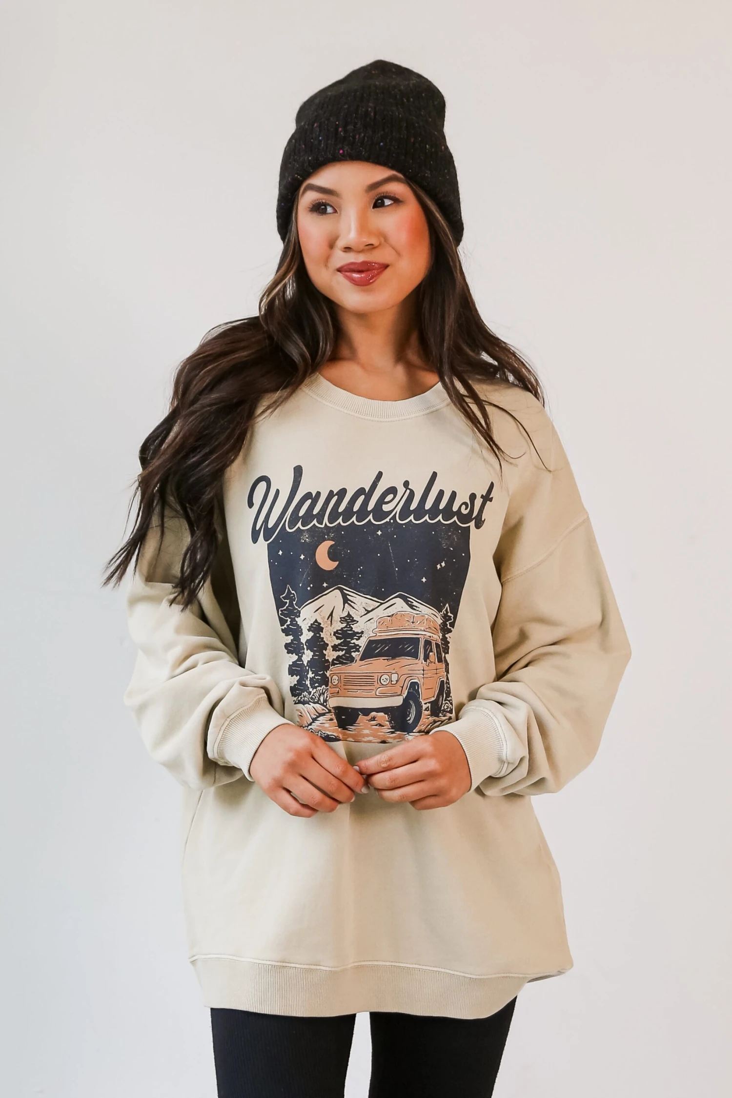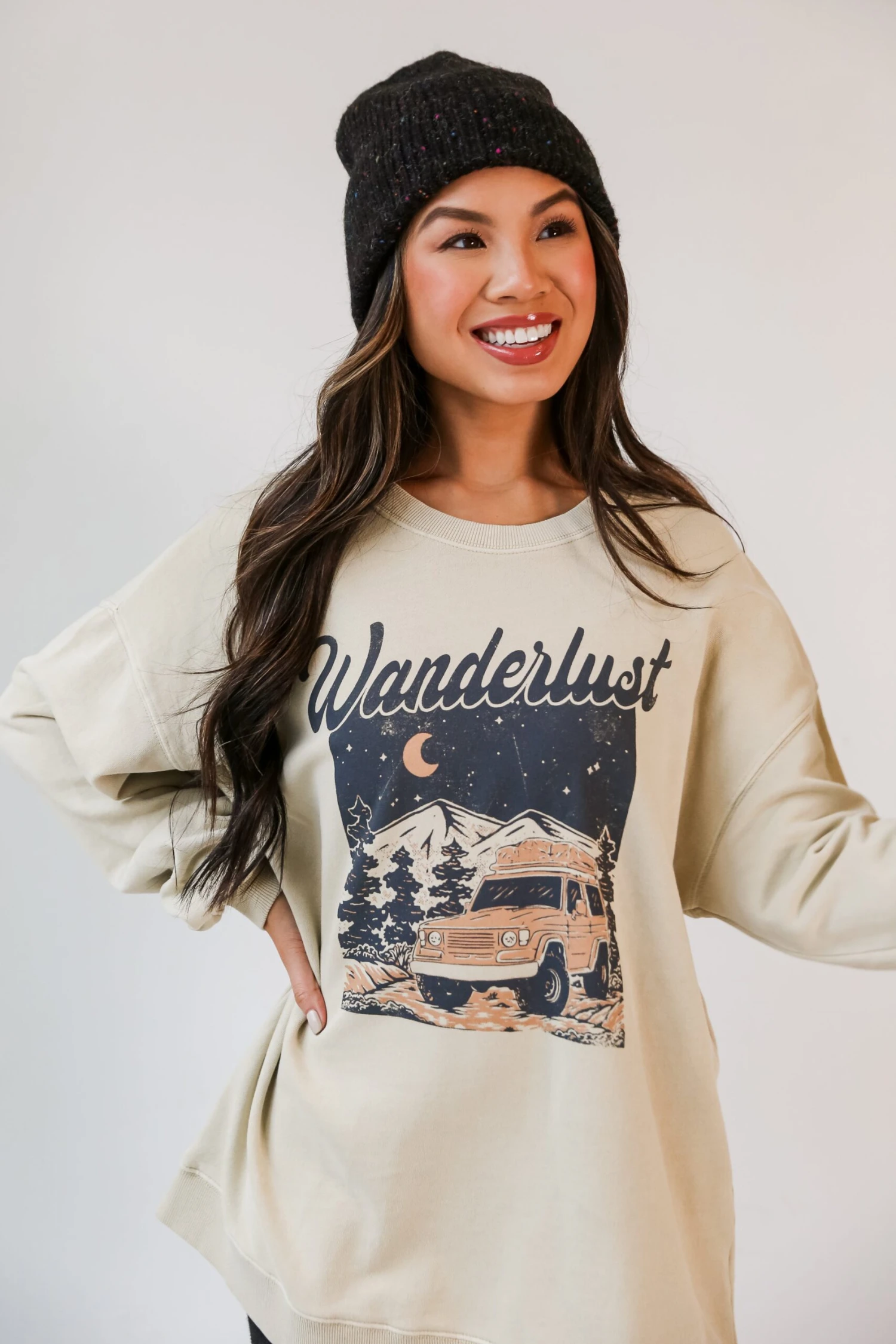 Introducing the Taupe Wanderlust Sweatshirt – a cozy and stylish expression of the adventurous spirit within you. Crafted from soft and warm fabric, this sweatshirt features a captivating graphic that combines the allure of wanderlust with a vintage car and a picturesque mountain scene. The “Wanderlust” inscription embodies the insatiable desire for travel and exploration, inviting you to embrace the open road and embark on new adventures. The vintage car and mountain scene add a touch of nostalgic charm, creating a visual narrative that resonates with those who seek the thrill of the journey and the beauty of the great outdoors. Whether you’re planning your next road trip or simply want to infuse your style with a sense of wanderlust, this graphic sweatshirt effortlessly combines comfort with the spirit of adventure!