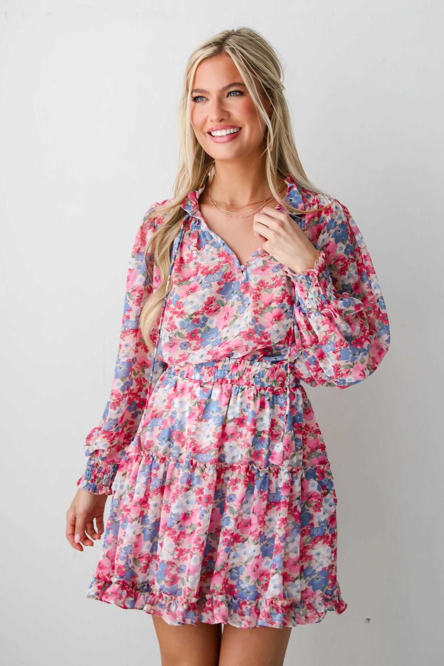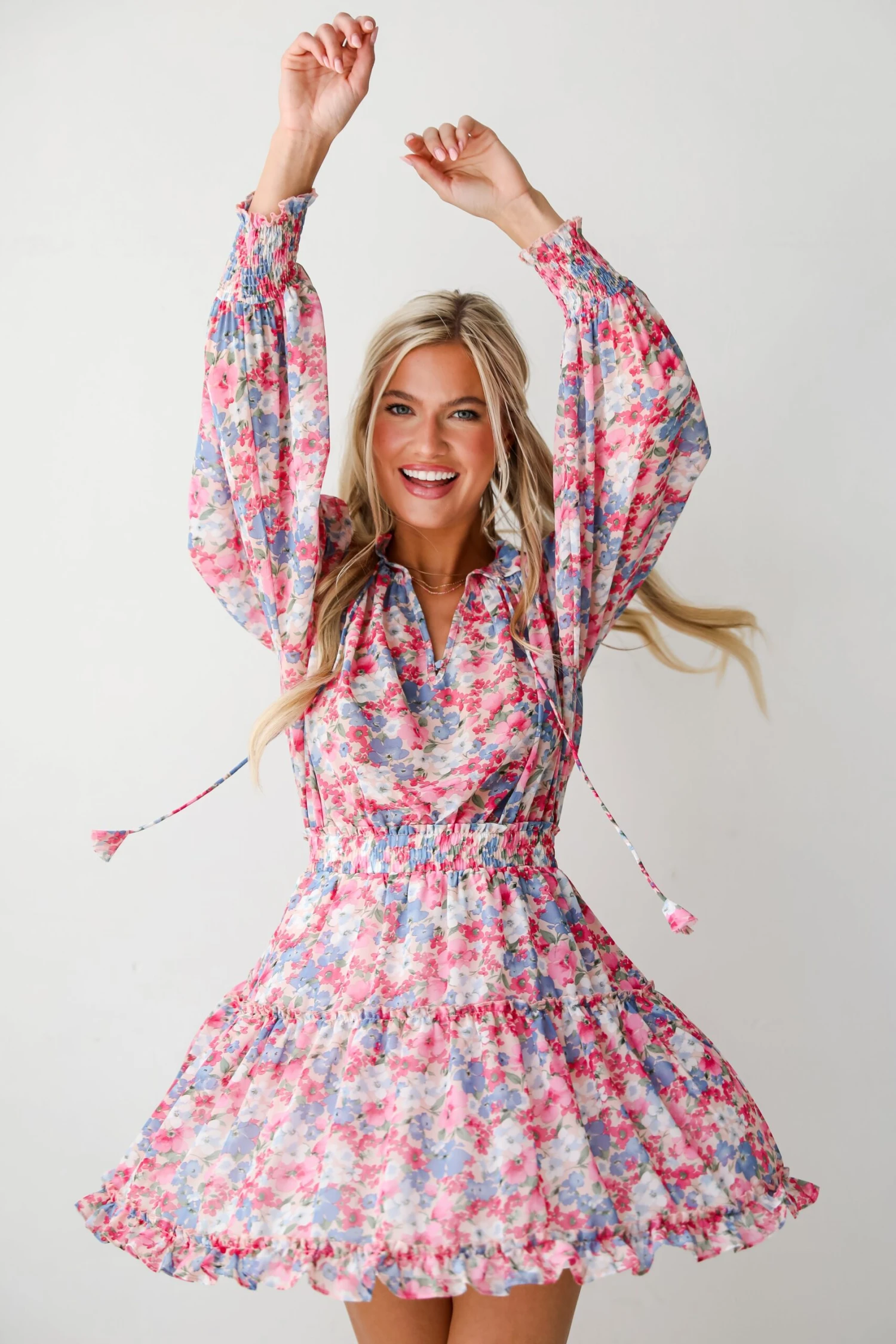 It’s easy to sweep everyone off their feet with the exceptional look of the Finest Endeavor Pink Floral Mini Dress! Crafted with meticulous attention to detail, this dress is designed to captivate hearts and turn heads wherever you go. The soft, blush pink hue of the fabric exudes a sense of romantic charm, reminiscent of a blooming garden in the first light of dawn. Adorned with a delicate floral print in shades of ivory, peach, and rose, each petal and leaf dances gracefully across the fabric, creating a whimsical tapestry of nature’s beauty. Pair it with strappy sandals and delicate jewelry for a soft and romantic daytime look, or elevate it with heels and statement accessories for a more formal affair!