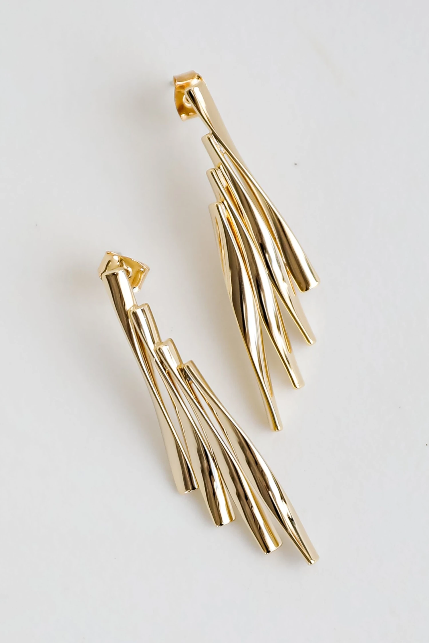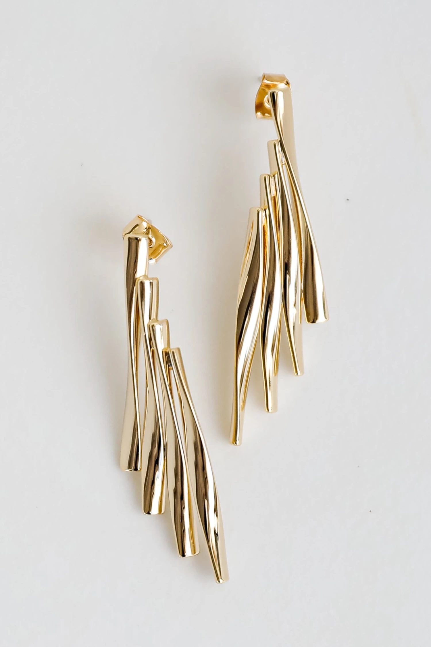 You’ll instantly fall in love with the aesthetic of the Harley Gold Statement Earrings! These cute gold earrings feature cascading wavy bars with a stud post back! Style the Harley Earrings with any outfit to instantly upgrade your look!