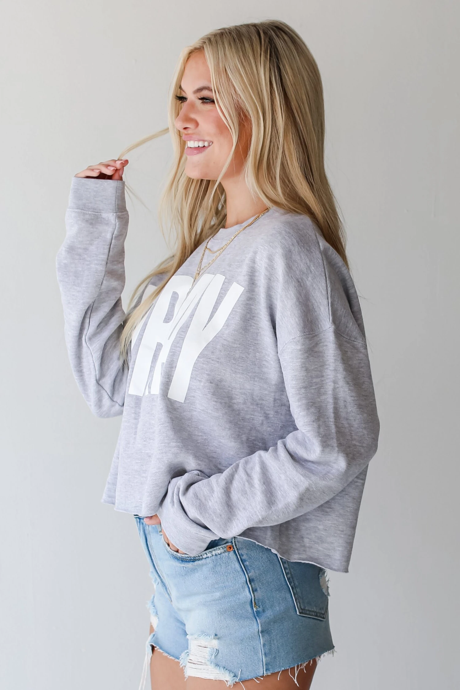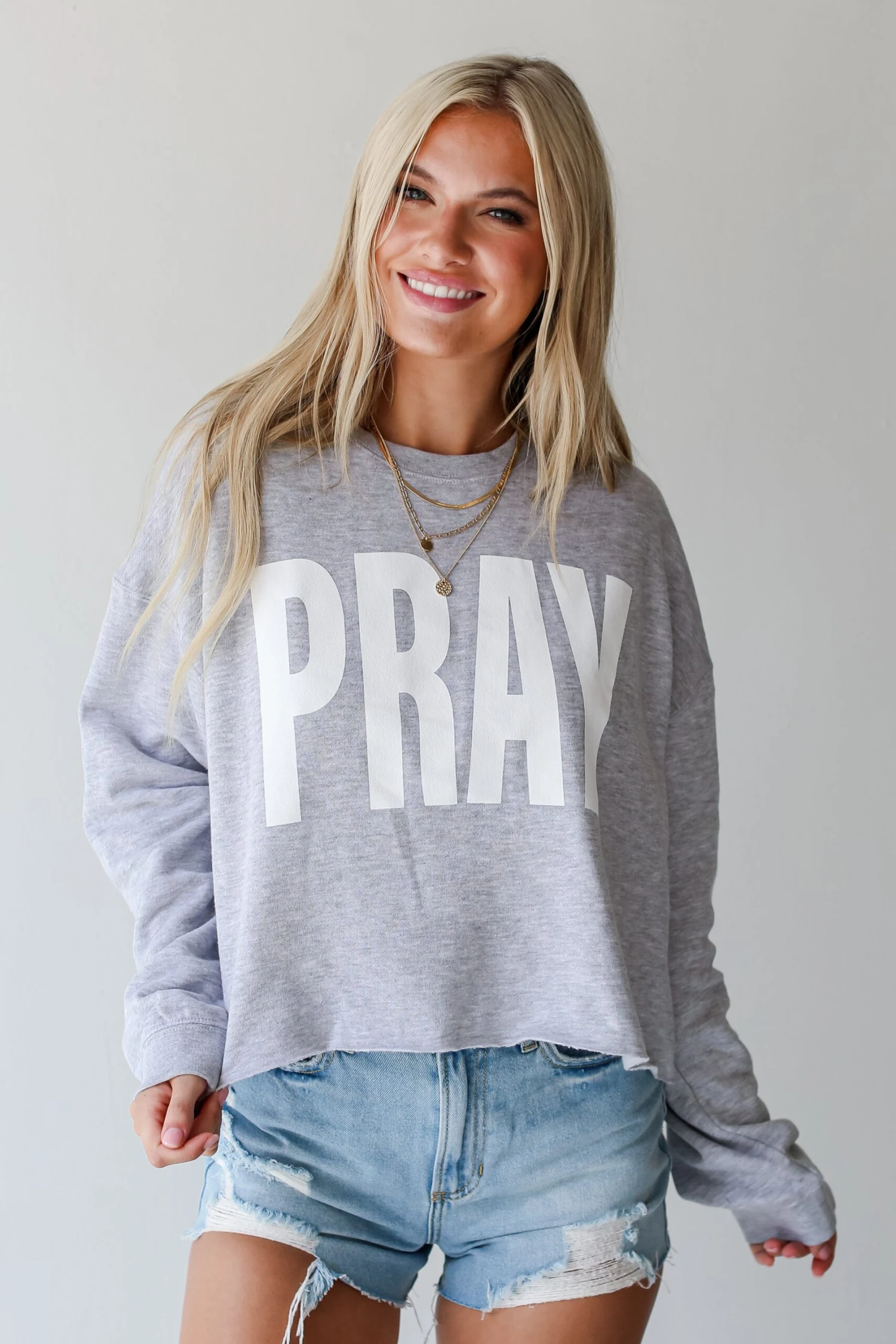 We love the message on the Heather Grey Pray Cropped Sweatshirt! This comfy sweatshirt is designed with a soft and stretchy knit with a fleece interior. It features a crew neckline, long sleeves, a relaxed fit, a cross on the front, and the word “Pray” on the front. Style the Heather Grey Pray Cropped Sweatshirt with your favorite denim and sneakers for a casual look!