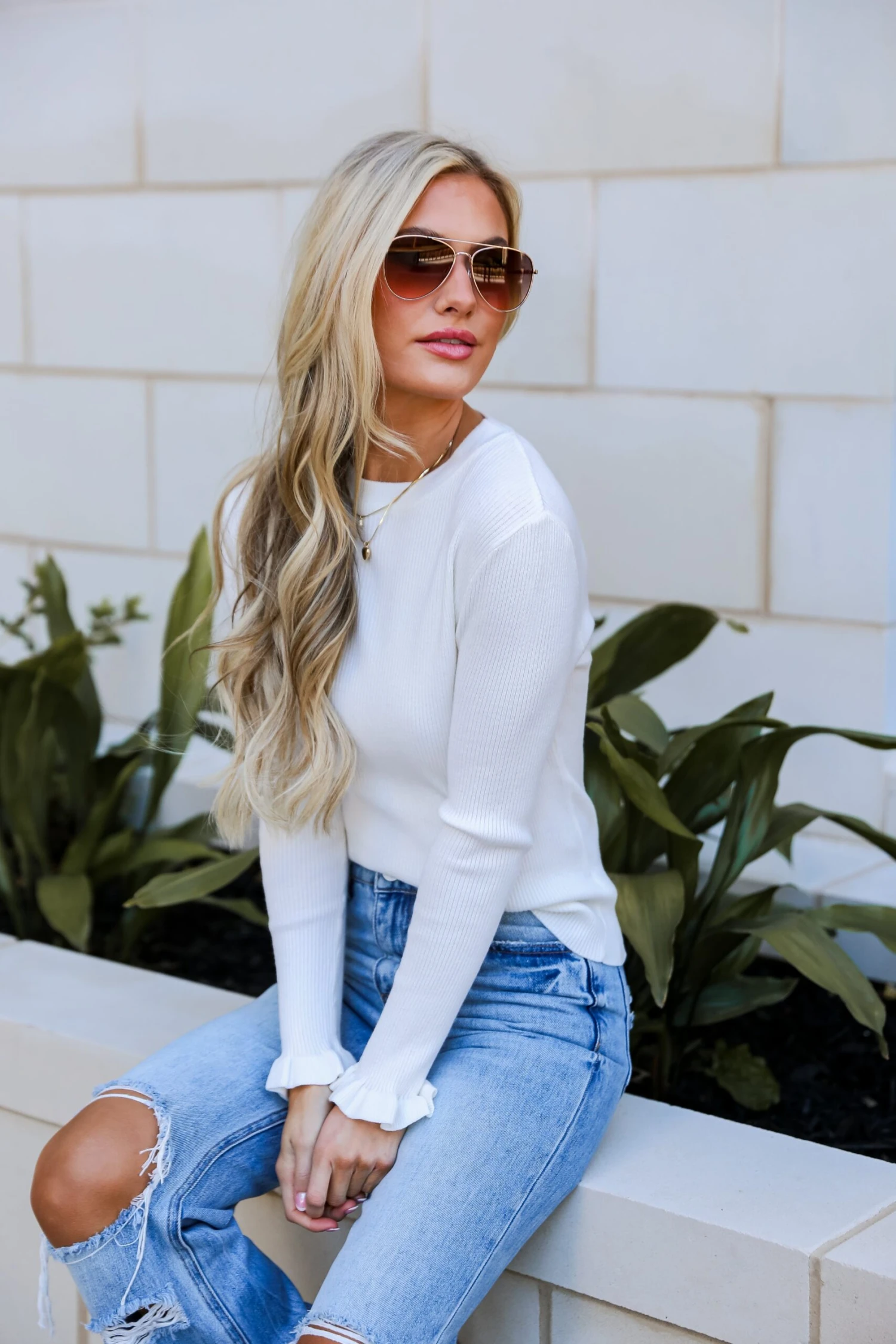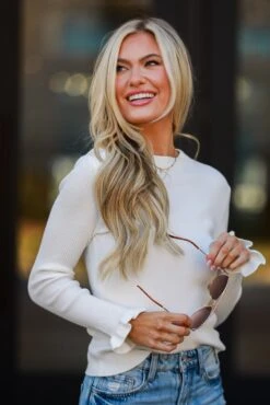 Introducing the Isabella Off White Ribbed Knit Top—a perfect union of simplicity and feminine flair! Elevate your everyday style with this versatile top, where classic ribbed knit meets playful elegance in the form of gracefully extended ruffle sleeves. Crafted from a soft and comfortable ribbed knit fabric, this off-white top provides a gentle drape that skims the body. The ribbed texture adds depth and a touch of modernity to the design, creating an essential piece that effortlessly blends comfort and style. Whether worn with your favorite jeans for a casual-chic look or tucked into a skirt for a more polished ensemble, this top ensures you radiate effortless charm!