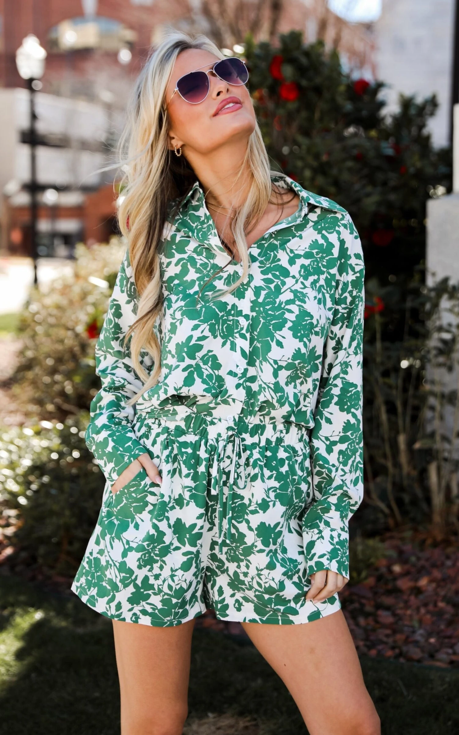 We’re daydreaming of piña coladas and warm nights in the Island Sunsets Green Floral Shorts! These shorts effortlessly marry comfort and fashion, making them the perfect choice for warm-weather adventures. Crafted in a lush green hue, these shorts serve as a refreshing canvas for a captivating floral print. The blossoms, in an array of colors and sizes, create a botanical tapestry that dances across the fabric, adding a touch of whimsy and femininity to your ensemble. The vibrant green backdrop exudes a sense of freshness, making these shorts a standout piece for any summer occasion. The versatile nature of these shorts makes them suitable for a variety of styling options – pair them with a crisp white blouse for a polished look, or opt for a casual vibe by teaming them with a simple tank top!