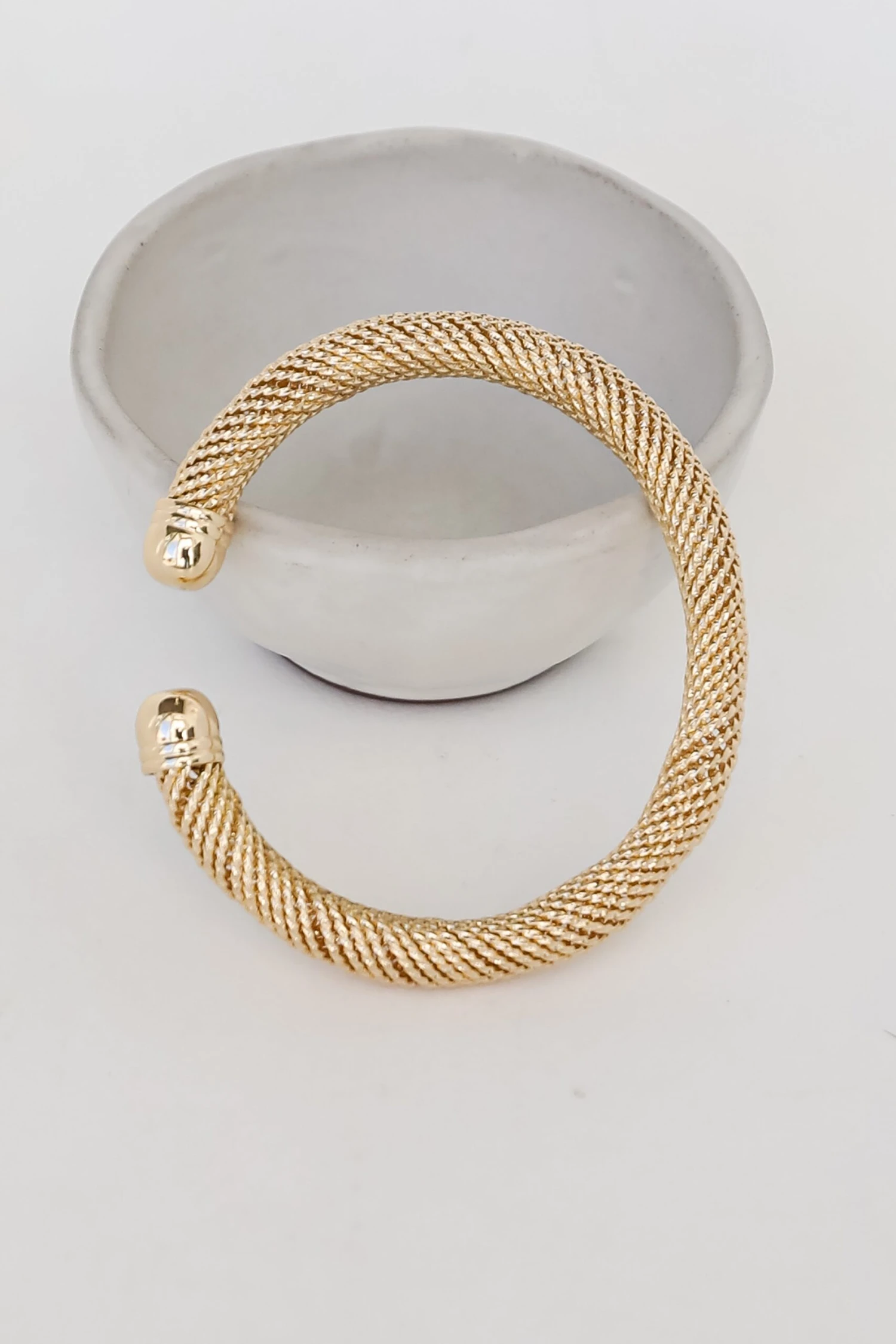 We know you love to stand out, and we know the best way to do so— with the Jane Gold Cuff Bracelet! This chic gold bracelet has a twisted cuff design. Wear it on its own or stacked with other bracelets to instantly upgrade your look!