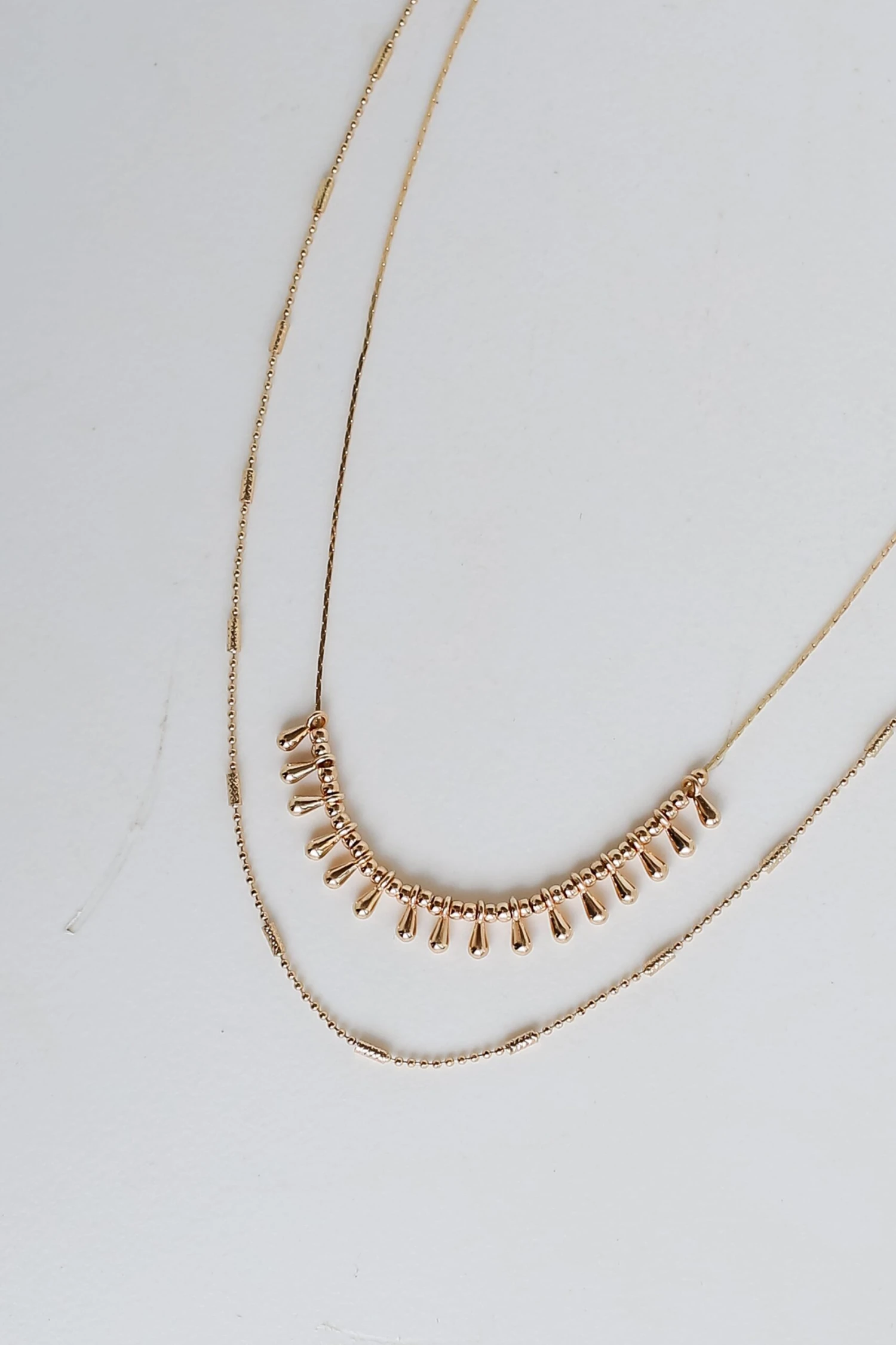 You’ll always be the main event when you accessorize with the Joanna Gold Layered Chain Necklace! This trendy necklace features two layers of gold chains with fun beading on the end. Style the Joanna Necklace with any outfit to instantly upgrade your look!