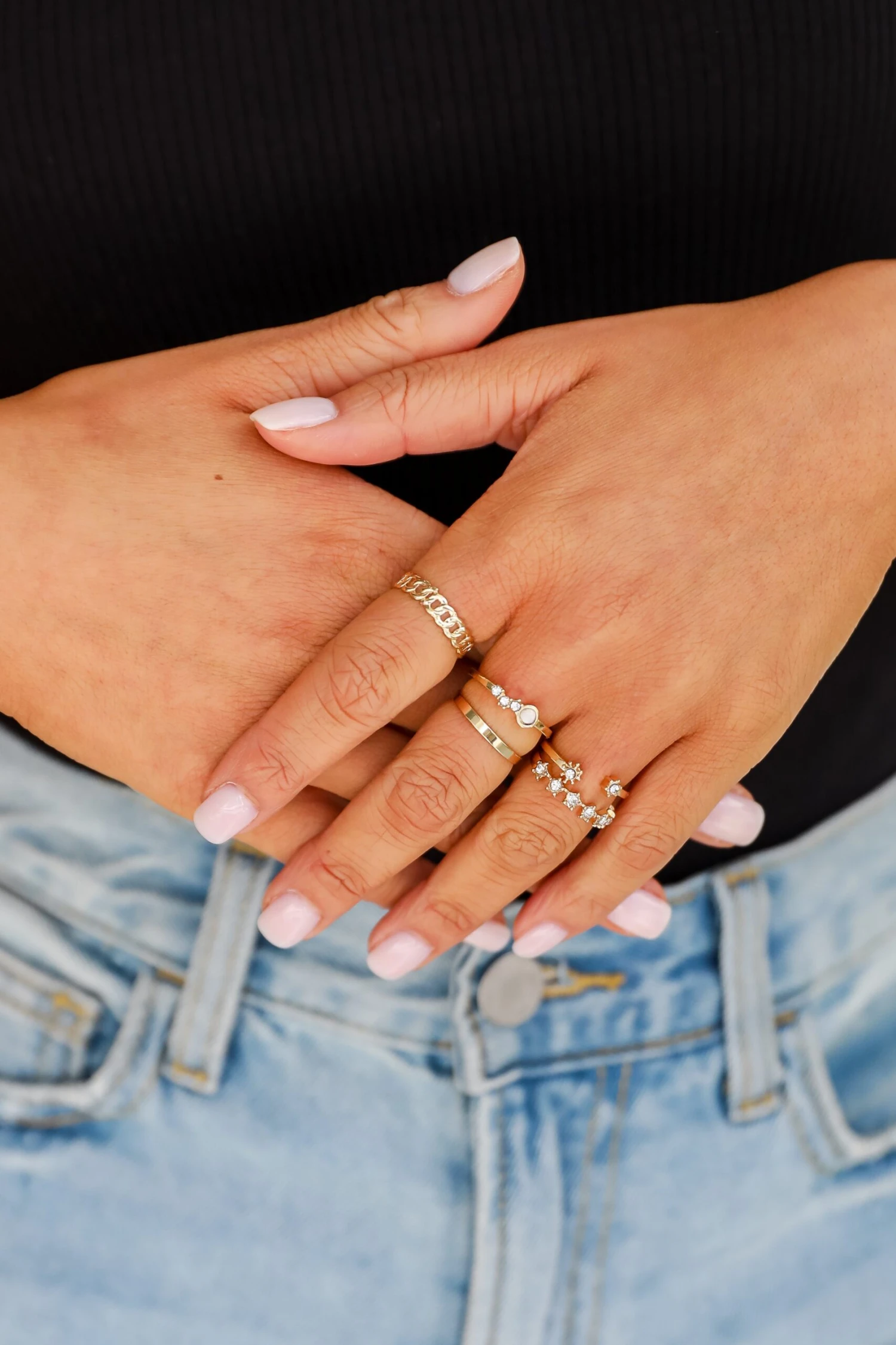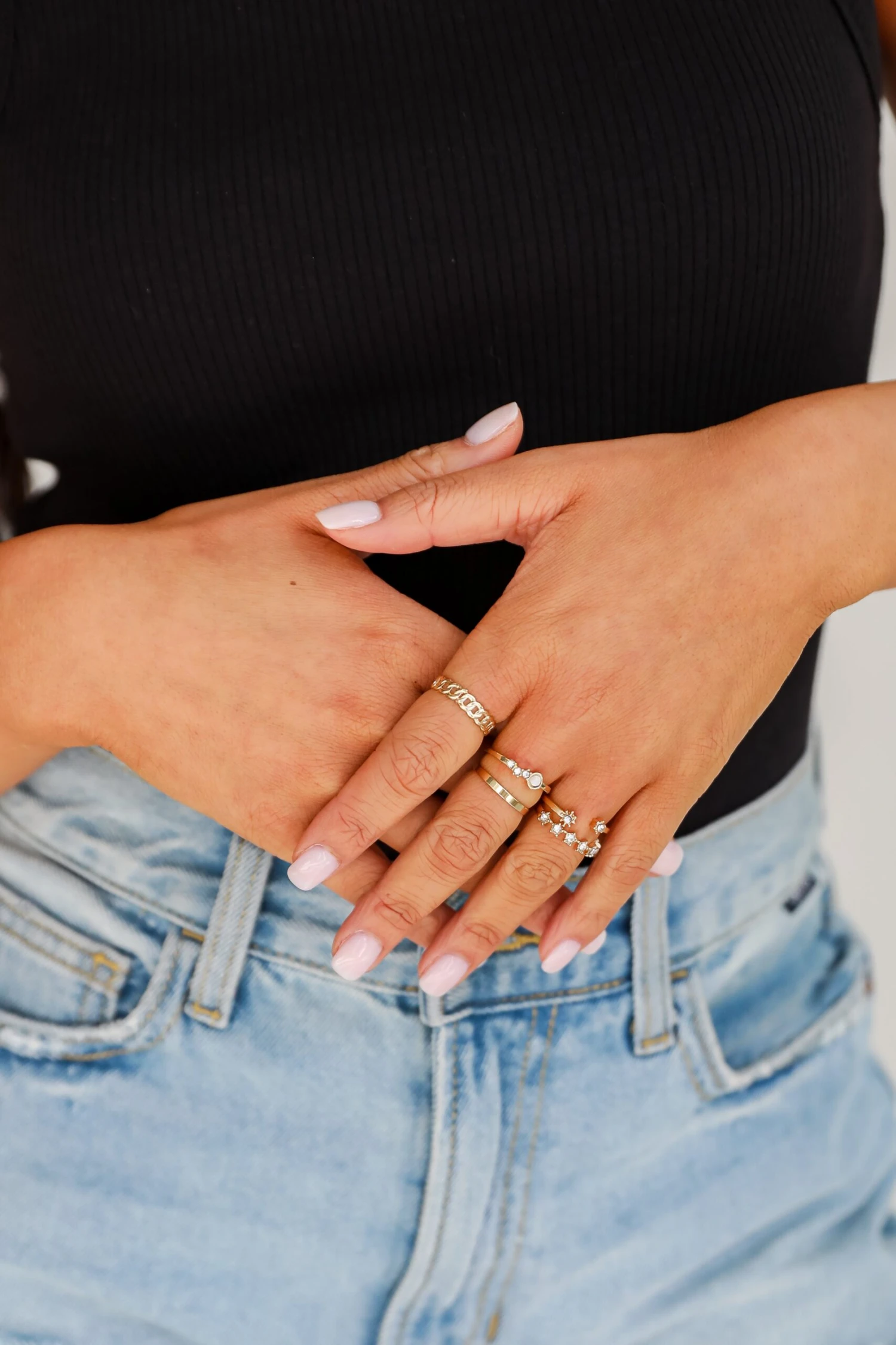 Polish your favorite looks to total perfection with the help of the Natalie Gold Rhinestone Ring Set! This set of five dainty gold rings feature varying shapes and textures. Wear the Natalie Rings separately or stack them all together, either way you’ll love them!