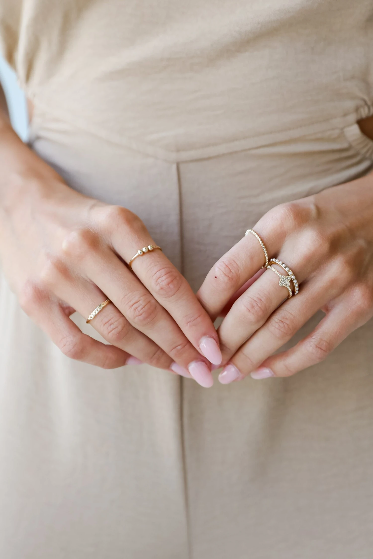 Grab your fave LBD and the Nicole Gold Ring Set and you’re ready to go! This set of five dainty gold rings feature varying shapes and textures. Wear the Nicole Rings separately or stack them all together, either way you’ll love them!