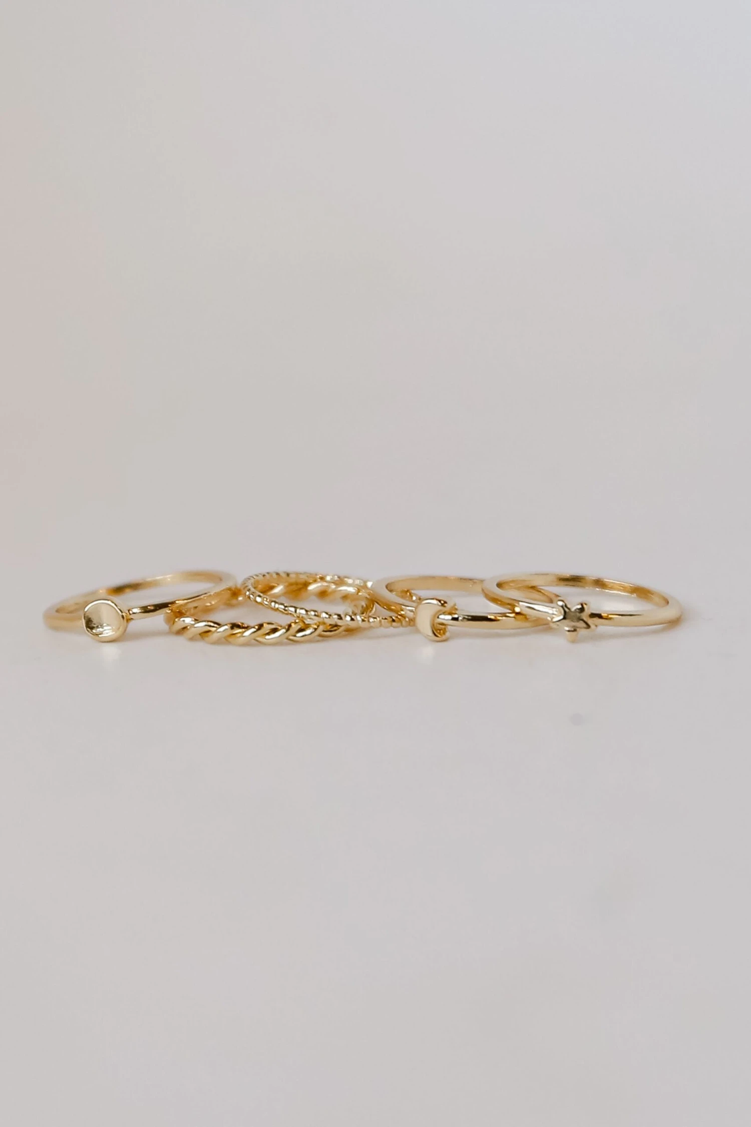 Embrace the comeback of the ’90s trend by adding the Rylee Gold Star + Moon Ring Set to your jewelry box! This set of three dainty gold rings feature varying shapes and textures. Wear the Rylee Rings separately or stack them all together, either way you’ll love them!